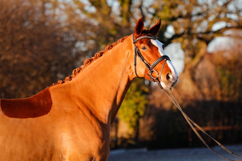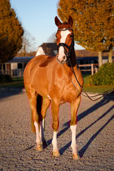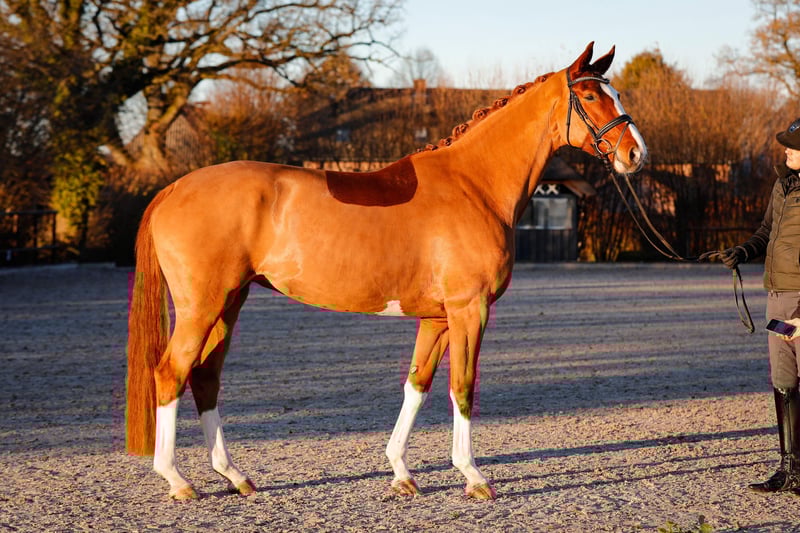Wyraziste młode konie do dużej areny. Fabenfroh urodziła się i dorastała u nas. Już osiągnęła kilka sukcesów na poziomie klasy A w ujeżdżeniu. Fabenfroh przez niemal cały rok przebywała na pastwisku w małej stadzie, 24/7 na zewnątrz. Jest odważna i zawsze gotowa do pracy! Chętnie udzielimy dodatkowych informacji – zapraszamy do kontaktu telefonicznego.