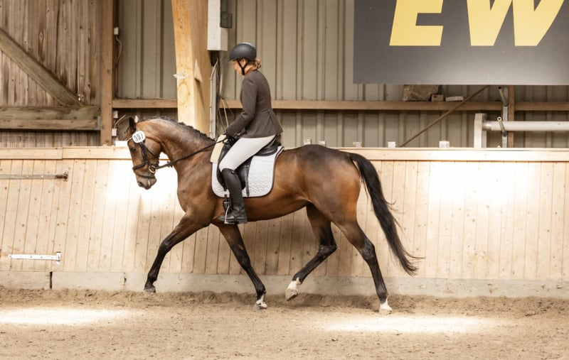 Alli is a talented 5-year-old mare from successful, private breeding. She is consistently motivated during daily work and eager to do her best. She demonstrates refined contact in dressage work and has enough impulsion. Additionally, she is equipped with three good basic gaits. In show jumping and on cross-country courses, she proves to be very agile, with good manners, talent, and extremely quick legs. She also shows plenty of go here. At competitions, she has impressed with her ambition and a great deal of courage. As an amateur rider, I was able to place her in introductory jumping, young horse classes, and cross-country tests of class A*, and she clearly shows potential for more. A promising young eventing horse. Riding out, whether alone or in a group, is completely trouble-free. We are looking for a loving 5-star home for Alli, where she will be well cared for but also challenged further. She enjoys working and would prefer a different program every day. We could also see her as a stepping-up horse for ambitious junior riders. Last year, radiographs including the spine were taken before starting her under saddle, with no findings. The images can be viewed upon request. If interested, please contact me via WhatsApp. Calls only after 6 p.m.