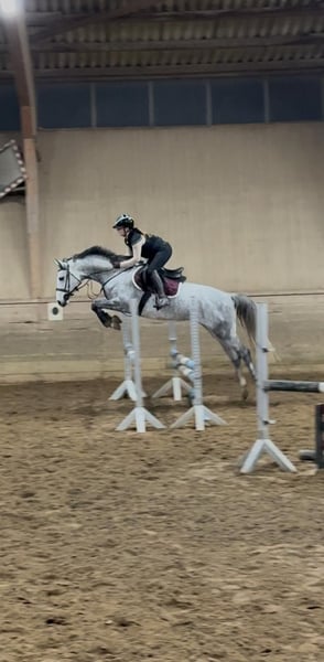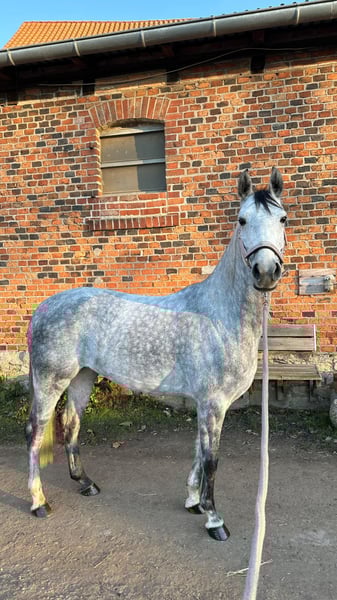 Elegant Hanoverian mare for sale – ideal for show jumping riders! This beautiful grey mare was foaled in 2020 and impresses with her attractive appearance and friendly temperament. With a height of 15.9 hh, she offers the perfect size for ambitious riders seeking a reliable jumping partner. She has recently begun training in show jumping and already demonstrates considerable talent and eagerness to learn. Her movement quality and technical jumping skills make her a promising partner for competitive riding or dedicated leisure riding. Please feel free to contact me for more information or if you are interested. Viewing and trial rides are available by appointment.