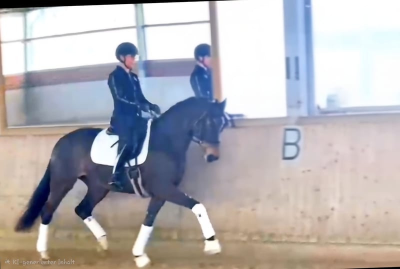 Hochmodernes Dressurblut mit toller Grundqualität! Eilisha stammt ab von Escamillo x Fürstenball und vereint von beiden Vätern nur das Beste! Ihre hohe Rittigkeit und ihre Lernbereitschaft bringen einem jeden Tag Freude bei der Arbeit. Video auf Anfrage