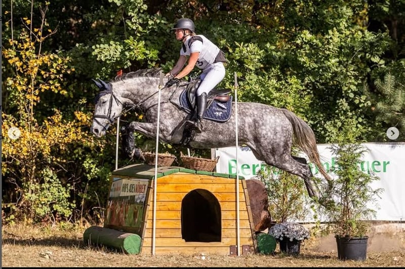 Diese charmante 6-jährige Schimmelstute besticht durch ihr freundliches Wesen, ihr Talent und ihre vielseitigen Einsatzmöglichkeiten. Nach einem Fohlen kam sie vor sechs Monaten in meinen Beritt und hat sich in dieser Zeit von Geländeprüfung E bis L kontinuierlich und souverän weiterentwickelt. Sie kannte die Basics, lernte in ihrer neuen Umgebung schnell dazu und hat sich mit großem Engagement und aufgeschlossener Art in ihre Aufgabe eingefunden, wobei sie besonders ihren Spaß am Springen und im Gelände zeigte. Hervorzuheben sind ihre drei ansprechenden Grundgangarten, insbesondere die großzügige, raumgreifende Galoppade. Sie verfügt über viel Vermögen, Kraft und Mut am Sprung, bleibt dabei stets gut zu regulieren, lässt sich arbeiten und treiben und verzeiht auch unerfahrenen Reitern kleine Fehler – ein Beleg für ihre bemerkenswerte Einstellung in diesem jungen Alter. Diese Attribute müssen natürlich weiter durch professionelle Trainer begleitet werden, und auch die dressurmäßige Förderung steht noch im Fokus ihrer Ausbildung. Hier macht sich der spätere Einstieg in das gezielte Training bemerkbar und körperlich brauchte sie, um die richtige Muskulatur zu formen, um den neuen Anforderungen zu entsprechen, ihre Balance zu finden und in ihrer Durchlässigkeit feiner zu werden. Sie erlernt schrittweise die L- Lektionen, was sich auch in einer entsprechenden verbesserten Rittigkeit in den anderen Sparten bemerkbar macht. Durch ihr kompaktes Format ist sie angenehm zu händeln, deckt jedoch auch größere Reiter gut ab. Damit eignet sie sich sowohl als Nachwuchspferd für Junioren oder junge Reiter, als Umsteigerpferd als auch für ambitionierte Amateure. Sie genießt Ausritte ebenso wie gezielte Trainingseinheiten. Im Umgang ist sie menschenbezogen, verschmust und neugierig und zeigt sich besonders zugänglich, sobald sie eine Bezugsperson gefunden hat. Mittlerweile ist sie international vorgestellt worden und beendete ihre erste CIC- Intro Ptüfung! Die Stute steht im Besitz ihres Züchters, der sie von Beginn an begleitet hat. Sie wird regelmäßig dem Schmied und Zahnarzt vorgestellt, ist entwurmt und geimpft. Röntgenbilder sind vorhanden, die Stute wurde nach dessen Begutachtung in Verden mit dem Vet+ ausgezeichnet.