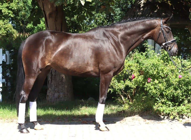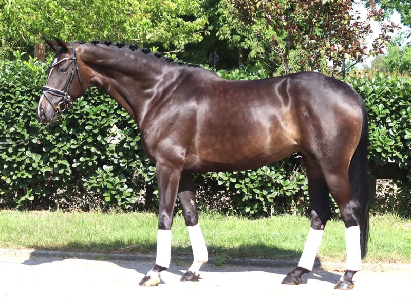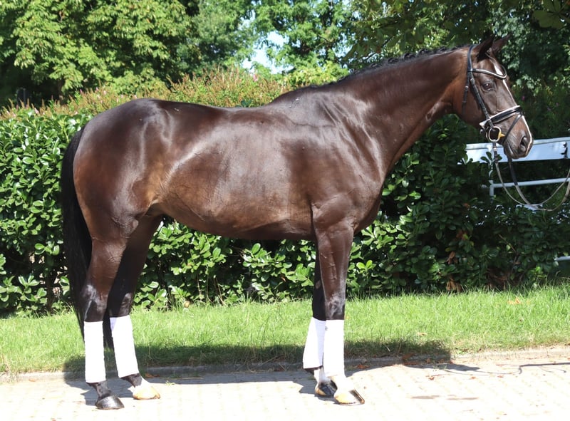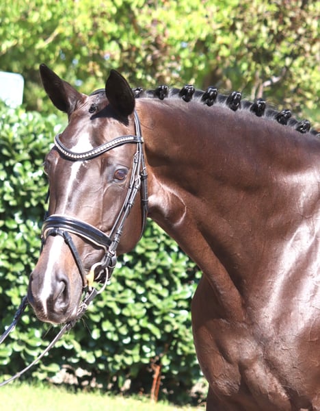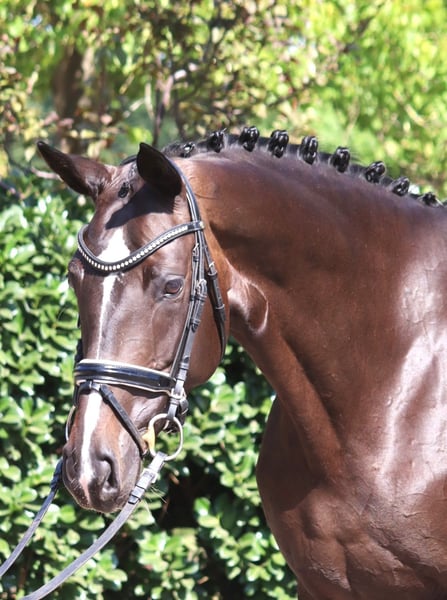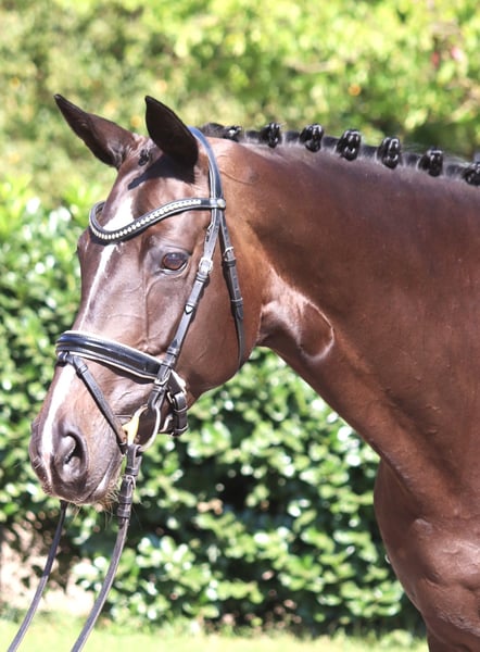 Sympathische 6 jährige Stute Bon Coeur x Hohenstein mit 3 sehr guten Grundgangarten und hervorragender Rittigkeit. Sie ist bereits auf Dressurpferde L Niveau zu reiten und konnte dieses bereits mit Platzierungen unter Beweis stellen. Ein absolut unkompliziertes Pferd, das in der täglichen Arbeit immer Spass macht. Preis zzgl. Mwst. Anfragen nur telefonisch, E-mails werden nicht beantwortet.