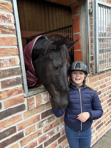 This mare combines top quality with an outstanding dressage pedigree. Bred from Fürstenball x Weltmeyer, she carries excellent performance bloodlines – a jet-black gem that is also highly interesting from a breeding perspective. She has already been placed in Dressage Horse A, and that was at only her second competition. The mare is very easy to ride, fearless, and impresses with a very expressive trot, generous overtracking, and three expressive basic gaits. With a friendly temperament and an estimated height of around 1.70 m, she is still fully developing and is expected to continue to improve positively. A highly promising dressage prospect for the upcoming season. Extremely light-footed, clear-minded, and easy to handle. Her TÜV was excellent at one year old, but of course, it needs to be renewed! She has never been ill or showed any abnormalities. Always healthy and in perfect condition.
