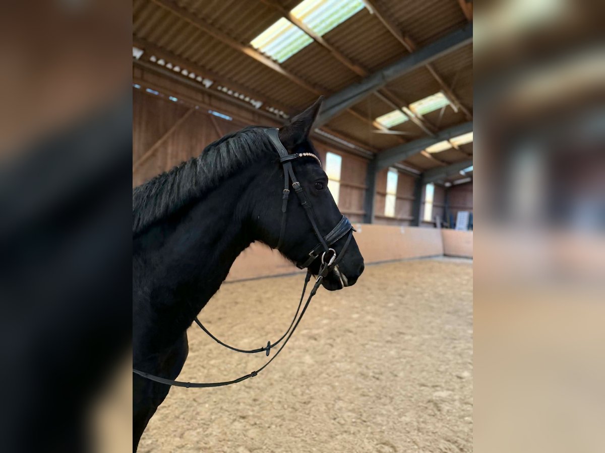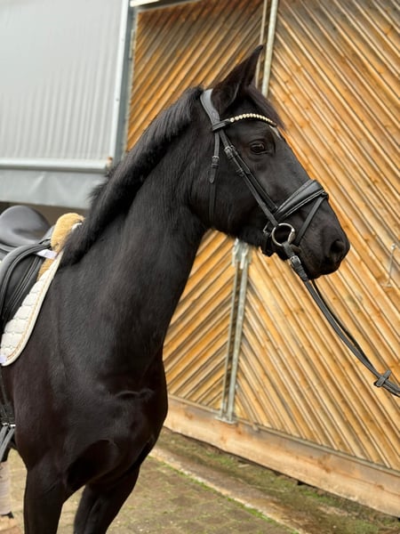 Santamaria, a 4-year-old Hanoverian mare, embodies elegance and performance. Titled State Premium (St.Pr.St) in Germany, it offers a rare opportunity on the French market. • Royal Origins: Navarro (son of Negro, father of Valegro) x Belissimo M x Donnerhall. • Highlights: Intense black dress, chic and modern model, three shiny looks with a lot of balance. • Potential: Future Grand Prix mare or elite folly for breeding. A safe investment for ambitious riders looking for quality and charisma.