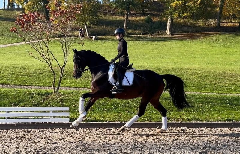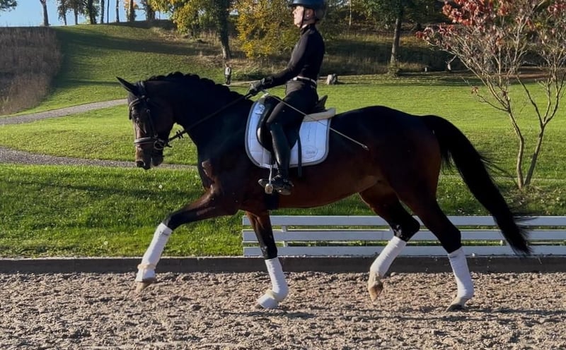 For sale is an expressive 6-year-old Hanoverian mare with an impressive pedigree: Finnigan x Laureano. She presents herself as a modern, athletic type with three above-average basic gaits – particularly noteworthy is her expansive canter with a super active hind leg. This mare not only brings quality but also an exceptional presence – a true eye-catcher in the arena. Due to her sensitivity, she is not suitable for beginners or insecure riders, but is looking for an experienced, consistent rider with feel and patience who wants to promote and further develop her. In handling, she always behaves exemplary and is very people-oriented – with the right partner by her side, she will be a real gem for dressage sport. Ms. Doktor has not yet been publicly presented. She is familiar with leisurely group rides, enjoys varied work, and does small jumps under the rider. Selling directly from the breeder at a reduced price due to a finding.