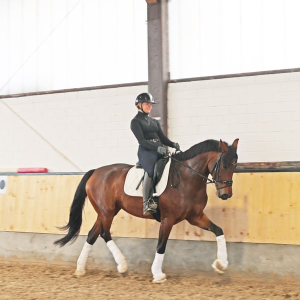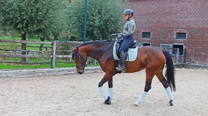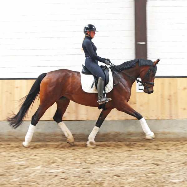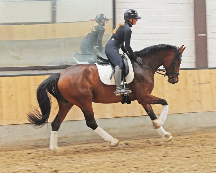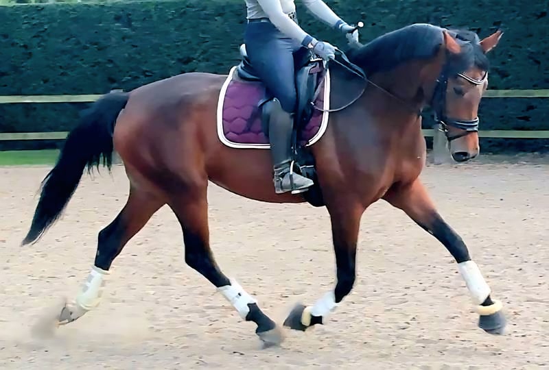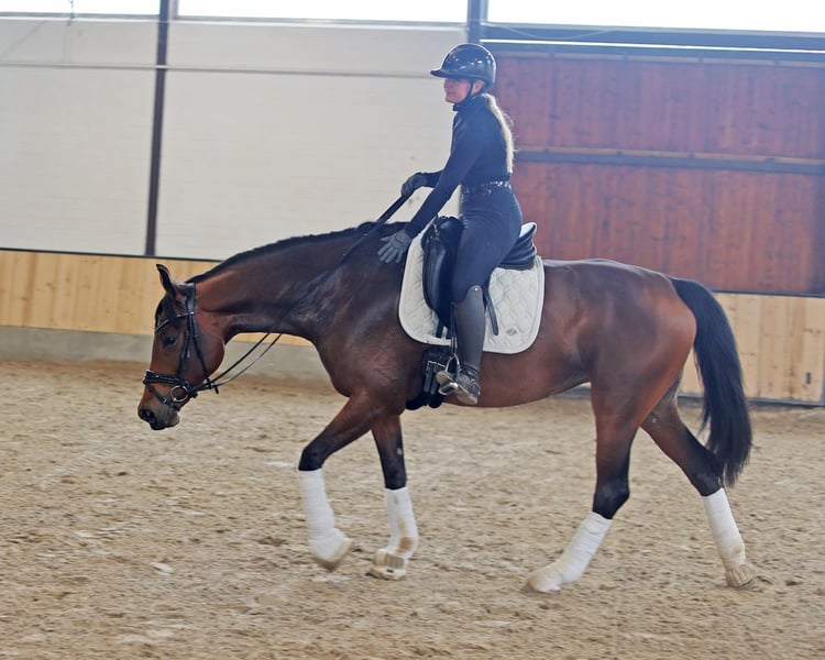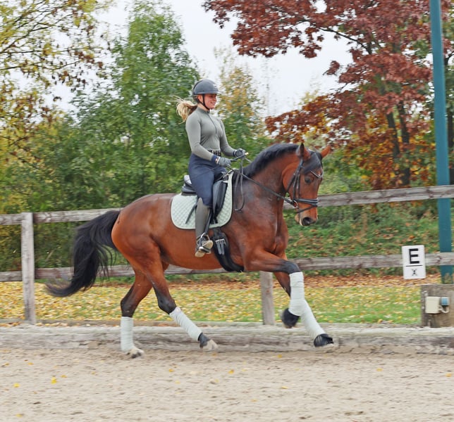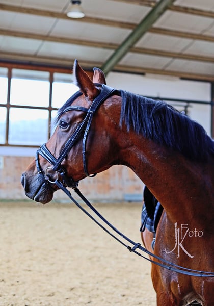 Ta piękna klacz zachwyca niepowtarzalną urodą i wysoką jakością. Jest to prawdziwy skarb w obsłudze – wystarczy, że 7-letnie dziecko wyprowadzi ją z pastwiska i umyje. Obecnie jeździ na poziomie A/L, z dość pewnym galopem na zewnątrz. Prezentuje bardzo dobry, szeroko wykroczony krok, pełen mechaniki chodu i przekonującego zadniego kończyny oraz wznoszący się do góry galop, skacząc przez przeszkody. Posiada aktualny, dobry przegląd techniczny obejmujący szyję i grzbiet. Można ją spokojnie prowadzić na wszystkich placach treningowych, a także na relaksacyjnej przejażdżce wokół bloku. Łatwo współpracuje z padami i jest gotowa na różne zabawy. Nie jest to jednak koń na okazjonalne jazdy, lecz dla ambitnego, sportowo wyszkolonego jeźdźca, który ceni sobie finezję i precyzję w jeździe. Koń o wysokiej jakości i sportowej przyszłości. FILMY: https://youtube.com/shorts/myfxtcEnfQ4?si=Uv0PKpFAPLNIFgoO ORAZ https://youtube.com/shorts/9_FZxDMXi2g?si=yA8uzjs--h8A8sFF INSTAGRAM: https://www.instagram.com/s/aGlnaGxpZ2h0OjE4MTc0ODc4NjE0MzU4MDAz?story_media_id=3746071437309122263_7420643624&igsh=OWRua2VkeXV3ZTY2 Więcej informacji i filmów pod numerem: 0177 275 9886