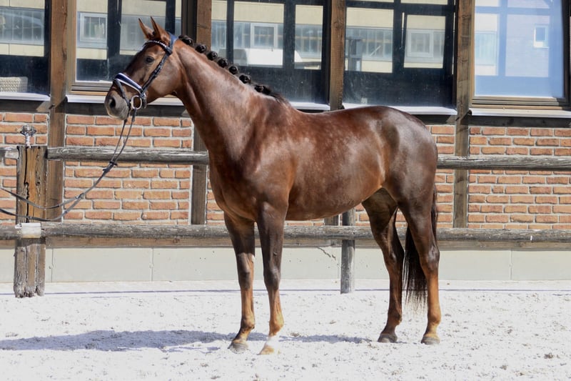 Zum Verkauf steht eine sechsjährige Dunkelfuchs-Stute von Floris Prince aus einer Jazz-Mutter. In dieser Saison konnte sie Dressurpferdeprüfungen der Klassen A und L gewinnen und war mehrfach hoch platziert, mit Noten bis 8,4. Im täglichen Umgang ist sie ausgesprochen brav und unkompliziert, unter dem Sattel jederzeit zuverlässig und unerschrocken.