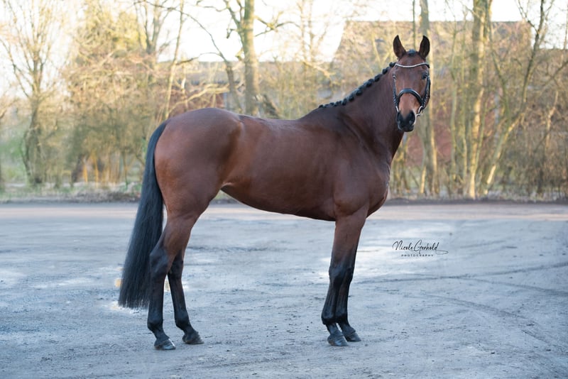 Hannoveraanse merrie – veelzijdig talentvol De merrie overtuigt door haar veelzijdigheid en bereidheid tot presteren. Ze heeft al enige ervaring op wedstrijden en heeft E-gelände geplaatst. Ze is alert, lichtvoetig en leergierig. De merrie is in de omgang zeer lief, maar ook gevoelig en bijzonder, en heeft daarom een ervaren ruiter nodig die haar veiligheid biedt. NIET geschikt voor beginners. Bij interesse hoor ik graag van u. Ik geef graag meer informatie en stuur video's op aanvraag.