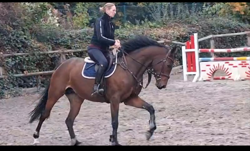 Fein zu reitende Stute. Asamia stammt aus eigener Zucht, ist 1,64m groß, deckt gut ab. Sie hatte ein Fohlen, ist daher spät angeritten und dieses Jahr erst in den Sport gebracht worden. Sie ist brav aber kein Anfängerpferd. Zur Zeit im Training für die nächst höhere Klasse, ein tolles Pferd für einen einfühlsamen, sicheren Reiter. Ich könnte Sie mir auch gut in der Vielseitigkeit vorstellen, da sie auch sehr gute Grundgangarten hat und sich easy in der täglichen Arbeit reiten lässt.