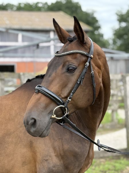 Te koop is een 7-jarige merrie van Borsalino uit een Weltmeyer moeder, rechtstreeks van de fokker. Baroness is ongeveer 169 cm groot en straalt in haar bruine jas. Ze was 4 jaar oud tijdens de merrietest en is ingeschreven in het stamboek. In 2023 en 2024 heeft ze elk jaar een veulen gekregen en wordt sinds oktober 2024 voorzichtig aangereden. Ze is vrachtwagenmak, gaat braaf naar de smid, kent tractoren, kinderen en honden. Ze is een paard met een eerlijke karakter en wil de mens altijd plezieren. Zowel in de dressuurring, met cavaletti's of ook in de grondwerk toont ze zich aandachtig en bereidwillig. Echter, de merrie is niet geschikt voor beginners, omdat ze een uitgebalanceerde en veilige ruiter nodig heeft die haar kan blijven ondersteunen in de spieropbouw en de basisopleiding. Voor meer informatie en video's graag op aanvraag. Met vriendelijke groet, Anna
