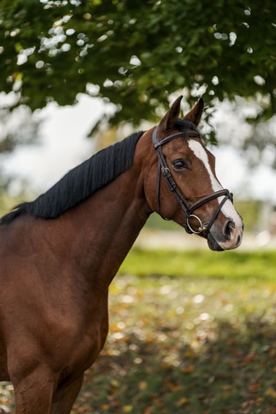 Martel is a seven-year-old mare directly from the breeder. She is pleasant to ride and well-behaved. She has a good jump and is a lovely horse for A/L/M jumping. She has gained competition experience up to 1.10 meters. Although still a bit green, she is eager to learn and always willing to work. She is familiar with lunging, turnout, the round pen, farrier, loading, and veterinary visits. None of these are issues for her. She is healthy and well cared for. A wonderful horse for the whole family.
