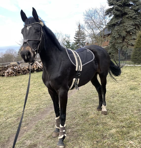 Na sprzedaż piękna klacz z pierwszorzędnej hodowli. **Cechy:** - **Rasa:** Hannoverczyk, zarejestrowany w Związku Hodowców Koni Skokowych Oldenburg International - **Płeć:** Klacz - **Rok urodzenia:** 2019 - **Kolor:** Ciemnobrązowy - **Wysokość w kłębie:** 170 cm Ta wspaniała klacz zachwyca harmonijną budową ciała, doskonałymi ruchami oraz pierwszymi obiecującymi potomkami. Zarówno po ojcu Conteur, jak i po matce Aljano, ma podwójne predyspozycje. Świetnie się porusza, ale do tej pory była łączona z ogierami skokowymi i obdarzyła nas wspaniałą klaczką po Dinken (widoczną na zdjęciach). Na rok 2026 jest pewnie w ciąży z Vagabondem (Sosath). Zawsze zaskoczyła nas ciążą przy pierwszej próbie, miała bezproblemową ciążę oraz poród i jest wzorową matką. Z pewnością ze względu na swoje pochodzenie, eksterier i charakter jest interesująca jako koń do jazdy, obecnie jednak jest jeszcze nieoswojona z uwagi na wykorzystanie hodowlane. W przypadku zainteresowania lub dodatkowych pytań, chętnie służę pomocą.
