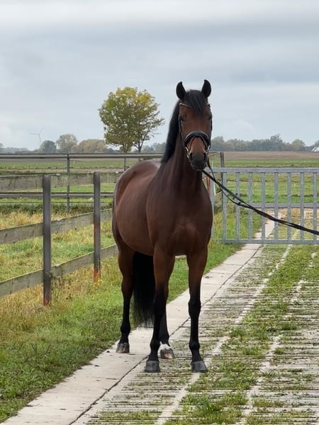 Príncipe Guillermo x Lord of Loxley x Rohdiamant - Nacido en 2019 - Yegua - Color marrón - Altura 1.72 m (16.1 hh) - Nivel de entrenamiento en doma clásica, grado L - Experiencia en competición, clasificada en doma clásica A - Criada por sus propios dueños, de primera mano - De paso ligero - Encornada en las patas delanteras con herraje - Inspección veterinaria en febrero de 2024 - Videos y fotos se enviarán por WhatsApp a interesados serios