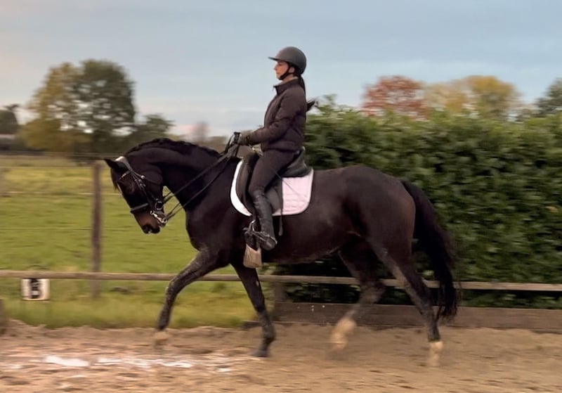 Gentle Touch (Gentleman x El Bundy) sucht einen neuen Partner zum glücklich machen. Sie ist 2018 geboren und ca 160cm groß. Sie beherrscht Dressurlektionen bis zur Klasse L sicher und kennt das Reiten auf Kandare. Im Springen ist sie bis zur Klasse M (1,20M) ausgebildet und auf Turnieren vorgestellt und hat auch Erfahrungen im Springen von Geländehindernissen, wobei sie sich stets mutig zeigt. Das Ausreiten ist sowohl alleine als auch in der Gruppe kein Problem. Gentle Touch überzeugt durch ihre absolute Ehrlichkeit und ihren Lernwillen. Sie verzeiht jeden Reiterfehler und bleibt immer zuverlässig und ruhig. Sie ist sehr leichtrittig und steht sehr fein an den Hilfen. Auch für Kinder und Reitanfänger ist sie gut geeignet und ist ein geduldiges Lehrpferd. Sie wurde bereits des öfteren von jungen Mädchen, Kindern oder totalen Reitanfängern geritten. Ebenfalls ist sie im Umgang sehr unkompliziert: sie lässt sich problemlos verladen, ist schmiedefromm, beim Tierarzt brav und auch im Alltag immer leicht händelbar. Sie war bisher noch nie verletzt oder lahm. Eine aktuelle (Anfang Februar 2026) gute AKU liegt vor. Ihr Züchter hat außerdem schon ein Fohlen aus ihr gezogen und sie ist im Hannoveraner- Hauptstutbuch als Zuchtstute eingetragen. Bei Interesse oder für mehr Informationen, schreiben Sie mir gerne eine Nachricht oder kontaktieren Sie mich: Laleh Lücke Mobil: 015228924592 Mail: l.alimoradian@web.de