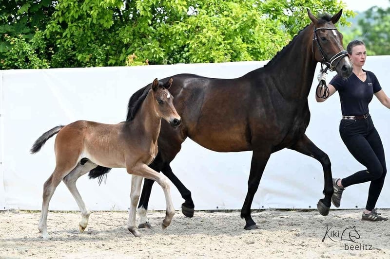 Por reducción de plantilla, esta yegua de 8 años, hija de Zoom x Brentano/Airport, está actualmente en embarazo de Diamantenglanz para principios de mayo y busca un nuevo hogar. Fue montada por primera vez a los 3 años, conoce el establo y la vida en box, está vacunada y desparasitizada de forma regular, y tiene un carácter algo sumiso.