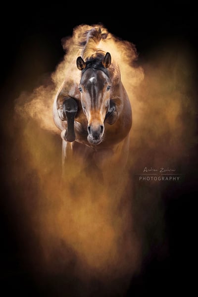 Casmira est une jument très spéciale, dotée d’un charisme tout aussi exceptionnel ! Elle provient directement de l’élevage et a été dressée avec beaucoup de précaution en raison du manque de temps. Casmira se monte en toute sécurité dans les trois allures, connaît les petits sauts sous la selle et réalise un changement de pied lors d’un parcours. Elle a besoin d’un cavalier ayant une main sensible. En liberté, elle montre beaucoup de talent, avec beaucoup de potentiel, des réflexes rapides et une excellente vision d’ensemble. En 2022, elle a convaincu lors d’un concours de saut en liberté à Verden avec de bons résultats. Elle n’a pas encore été présentée en public. Elle est également très motivée en travail à la longe et souhaite toujours faire de son mieux. Sa mère, la poulinière primée d’État Europa, a produit de nombreux descendants performants en saut d’obstacles jusqu’à 1,40 m, et a elle-même passé une excellente inspection de performance de poulinière. Casmira a grandi sur nos vastes pâturages de marche, au sein d’un grand groupe de troupeau, et est bien socialisée. Elle n’a jamais été malade, ne présente ni eczéma ni autres problèmes. En main, elle est facile et bien dressée. Elle connaît les machines agricoles, les vaches, les poules et les chiens. Curieuse et intéressée par son environnement, elle reste néanmoins courageuse et intrépide. Je reste à votre disposition pour toute information complémentaire et pour organiser une visite. N’hésitez pas à me contacter pour en savoir plus sur cette jument pleine de promesses !