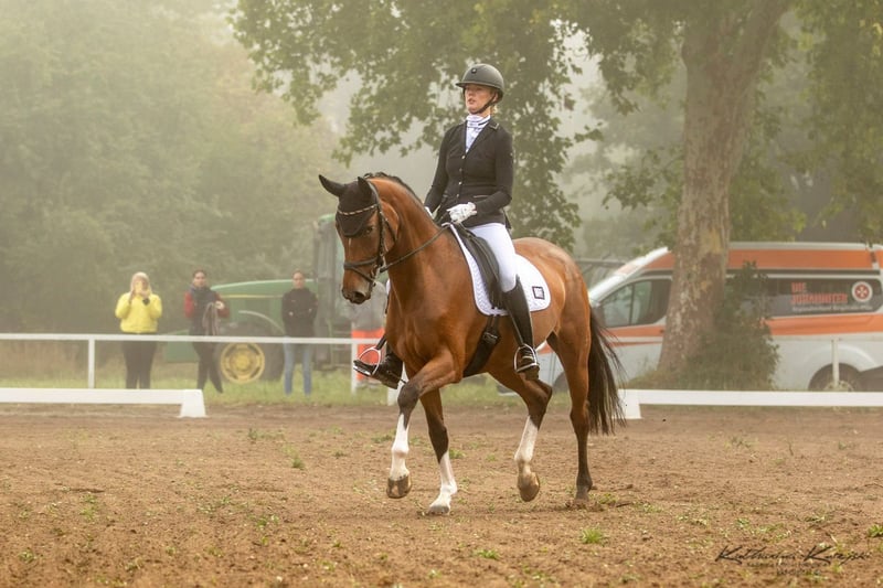 6 ans jument hanovrienne brune de haut niveau v. Carridam x Embassy I, 1,68 stm*. La facilité sous la selle, un excellent feeling sous la selle. excellentes allures Une véritable pointe de matériel et un cheval de formation par excellence Conformément à son ascendance, on a également observé une capacité de saut remarquable Placé en épreuve de dressage classe A Opportunité privée - Super prix € 27.500,--