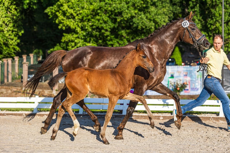 In vendita una splendida mare di 7 anni di razza Kohlfuchs, discendente da Baron (Benicio x Sir Donnerhall) x Wolkentanz. Ha già avuto due puledri, tra cui una puledra di quest'anno premiata con il Goldpreis. Attualmente non in gravidanza per l'anno prossimo. Adatta alla riproduzione, ma attualmente viene lavorata da sotto e lungata. Non è stata montata recentemente, motivo per cui il prezzo è notevolmente inferiore rispetto al suo valore reale. Sono disponibili radiografie recenti, ma non ha chip o altri sistemi di identificazione.