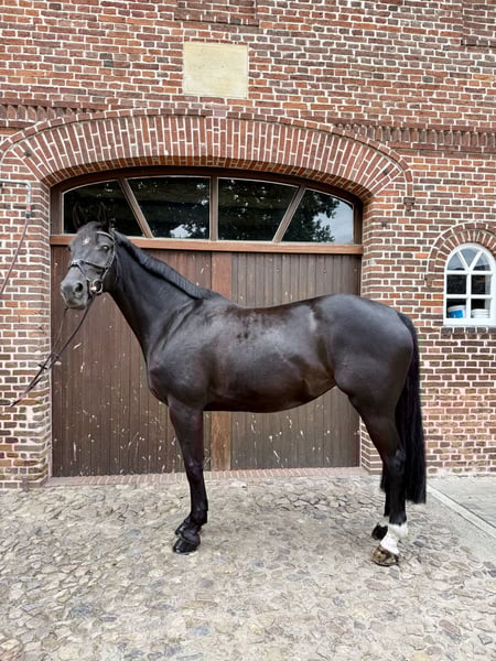 Hannoverian Black Mare For sale is a beautiful Hannoverian mare, born in 2017. She presents herself in an elegant black and has a height of 171 cm. Violetta (Veracruz 11) has already competed in tournaments in 2021. Due to personal reasons, she had a longer break. Since 2024, she has been actively participating in competitive sports. I am currently riding this talented mare at L-level, and in training, we also jump 1.25m, where she shows great potential. She has a friendly character and is very well-behaved both in handling and under saddle. Ideal for experienced riders looking for a partner for show jumping. She goes out both alone and in a group. From this dam line, a licensed stallion and international show jumping and auction horses have emerged. If you are interested or have further questions, please feel free to contact me. The price includes VAT. Please do not respond here, as this will not be considered, but contact me directly at 0176/ 72 88 17 36 via WhatsApp or by phone. Viewings are possible by appointment.