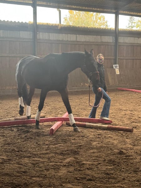 Aus persönlichen Gründen suche ich für meine Hannoveraner Stute ein neues, liebevolles Zuhause. Die Stute ist insgesamt lebhaft und sensibel, dabei jedoch stets gut händelbar. Sie eignet sich bevorzugt für erfahrene Reiterinnen oder Reiter, die Freude an einem energiegeladenen, motivierten Pferd haben. Aufgrund einer früheren Verletzung (noch vor meiner Zeit) besteht in einem Hinterbein ein Lymphstau. Nach längerem Stehen neigt das Bein zum Anschwellen, was sich durch Bewegung zurückbildet. Sie benötigt daher täglich ausreichende Bewegung, die ihr sehr guttut. Die Stute wird ganz normal geritten. Die vorhandenen Reitvideos stammen aus dem letzten Monat (November). Zudem ist sie im November noch erfolgreich bei unserem Hausturnier eine E-Dressur gegangen. Beim Verladen sowie beim Schmied zeigte sie sich bisher stets zuverlässig und unkompliziert. Eine umfangreiche und unauffällige Ankaufsuntersuchung (AKU) aus Mai 2023 liegt vor. Der passende Platz steht für mich deutlich vor dem Preis. Die Abgabe erfolgt ausschließlich in verantwortungsvolle Hände. Probereiten ist jederzeit möglich. Ein Fohlen hatte die Stute bisher nicht; aufgrund ihrer guten Abstammung kann sie jedoch auch als Zuchtstute interessant sein. Passendes Zubehör (Euroriding Emilio Dressursattel, Trense mit Stübben-Gebiss sowie weiteres) kann auf Wunsch mit übernommen werden. Ich wünsche mir ausdrücklich, dass sie nicht als Schulpferd eingesetzt wird, sondern eine feste, liebevolle Bezugsperson erhält.