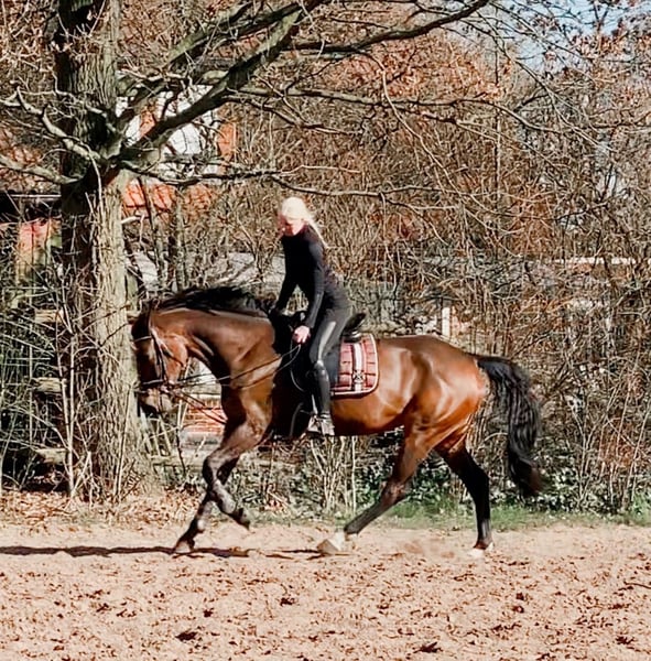 For personal reasons, we are parting with our Hanoverian mare on short notice. To begin with: The sale is not urgent, and the perfect home is our priority. About the horse: Our mare is a 1.73m tall lady who has already gained competition experience. This year, she had a typy colt, with successful insemination on the first attempt, and the birth was completely uncomplicated. Our Filippa is a mare who wants and needs to be worked. When she is, she becomes an absolute fun horse, jumps over every obstacle, and is bombproof both alone and in a group when going out into the field. She learns every dressage lesson with eagerness and joy. She is incredibly versatile and enjoys all kinds of work. However, if she is not worked regularly, she can be a bit difficult and may buck on the first ride. Here, the emphasis is on CAN and FIRST RIDE. If Filippa is encouraged and challenged, she won’t put a hoof wrong. She is a fearless mare, not overly sensitive, but in the right hands, she is a life insurance and a fun machine. She was X-rayed in 2022 with no findings. Clinically, there were also no complaints. Should a buyer want current pictures, this can be arranged at their own expense. What we are looking for: No "Wendys" or people who think that 5 days of groundwork replaces proper riding. We seek experienced horse people who want to work ambitiously and diversely with the horse while remembering that the horse is a partner. We require species-appropriate housing. She is familiar with both open stable and box housing with daily turnout. Only having her in a paddock or pasture for a few hours or solely in a box is not an option for us. The low price is due to her current training status (just weaned foal), which also makes a trial ride impossible. The mare is now being properly retrained, and the price will increase accordingly. Currently, we can discuss a trial period. Videos available.