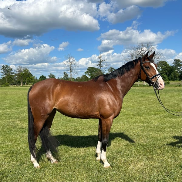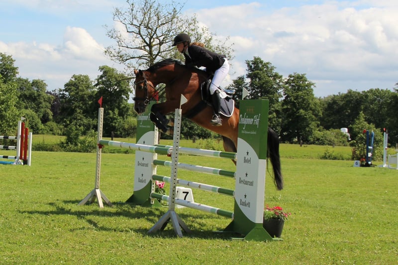 For sale is the 9-year-old Hanoverian mare "Qiwi" by Qualito. She stands 1.56 meters tall and is a true all-rounder with heart and quality. Qiwi has achieved placements in show jumping up to level M and has already won at level L – she is quick over and between jumps, demonstrating excellent awareness, agility, and a smooth jumping style. In dressage, she is confident in all movements up to level L, consistently motivated and responsive, and can be ridden with great finesse. Both in handling and under saddle, she is exceptionally well-behaved and reliable. Thanks to her comfortable size and refined rideability, she is ideal for ladies and younger riders who wish to benefit from her positive work attitude and experience. Qiwi provides confidence, forgives mistakes, and is a valuable teacher both for leisure riding and competitive sport. A current TÜV report is available without any defects. She wears front shoes, and during the season, she had four studs, which were easily removed for winter. Qiwi spends her days in a mixed herd and her nights in a box. She is now looking for a loving family or owner who would appreciate a dependable schoolmaster – perfect for children making their first jumping experiences, as well as for riders aiming to ride confidently and successfully in higher-level show jumping. A trial ride costs €20 to help prevent rearing during test riding, which will be deducted from the purchase price if she is bought. Additional videos can be found on Rimondo.
