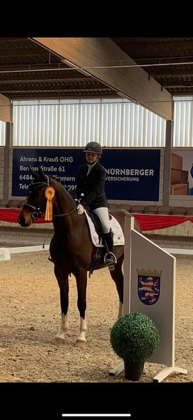 Coeur de la fleur ist ein sehr schickes und feines Pferd mit 3 sehr guten GGA. Sie ist siegreich in der Dressur bis A**. Außengalopp, Kurzkehrt und fliegender Wechsel können auch bereits recht sicher abgefragt werden. Sie ist sehr feinfühlig, leichtrittig und fleißig. Auch das Springen macht ihr viel Spaß und sie geht brav einen kleinen Parcours. Sie fährt alleine oder in Begleitung Anhänger, liebt täglichen Koppelgang und ist brav im Umgang. Wir haben sie direkt vom Züchter, selbst angeritten und ausgebildet. Sie ist nicht für Anfänger oder unsichere Reiter geeignet.