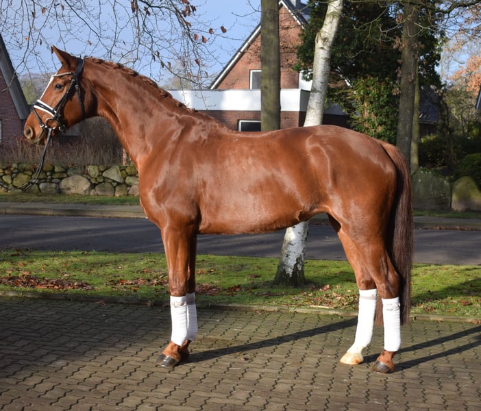 Hübsche Stute, die sich unkompliziert und gelassen präsentiert. Sie ist sehr brav zu reiten und kennt auch Gelände. Dazu ist sie nervenstark und von jedermann zu reiten. Mit ihrer edlen Erscheinung und Bewegungungen in guter Qualität ist sie ein echter Hingucker im Viereck. Ein Pferd zum Losreiten und Schleifen sammeln! Mehr Infos finden Sie auf unserer Homepage. Probereiten jederzeit nach Absprache möglich.