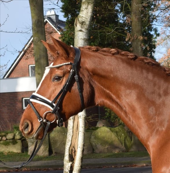 Hübsche Stute, die sich unkompliziert und gelassen präsentiert. Sie ist sehr brav zu reiten und kennt auch Gelände. Dazu ist sie nervenstark und von jedermann zu reiten. Mit ihrer edlen Erscheinung und Bewegungungen in guter Qualität ist sie ein echter Hingucker im Viereck. Ein Pferd zum Losreiten und Schleifen sammeln! Mehr Infos finden Sie auf unserer Homepage. Probereiten jederzeit nach Absprache möglich.