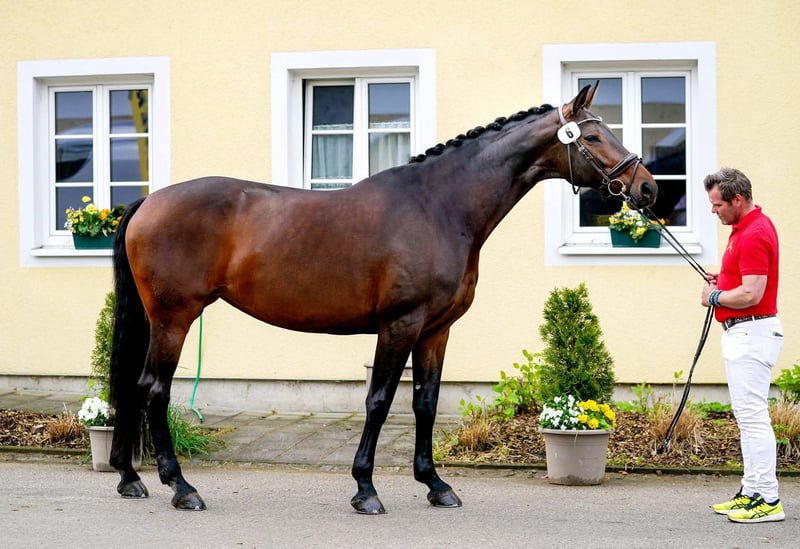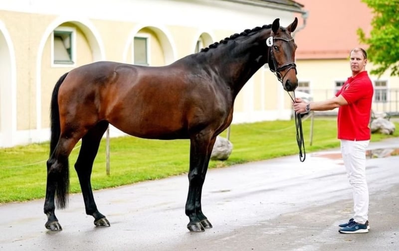 Super candidate pour le prix d'État, fille de Vivaldi, a eu 2 poulains chez nous et malheureusement, elle est toujours très difficile à porter. Pas 9.0, trot 8.5 enregistré ! Fototeam.eu Cette année, cela n'a malheureusement pas fonctionné, donc elle est actuellement en cours de rééducation. La jument a un caractère exceptionnel et est facile à monter. Idéale aussi pour les cavaliers de retour car elle est très calme en main et sous la selle. Le poulain actuel peut être sevré mi-novembre, puis la jument pourra déménager. Des photos plus anciennes sans problème sont disponibles, dents faites.