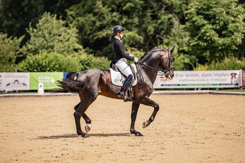 Ein Hengst wie man ihn schöner nicht malen kann - Siegreich bis Grand Prix Spezial Dieser beeindruckende gekörte und geprüfte Hengst überzeugt nicht nur durch seine sportliche Qualität, sondern auch durch seine bemerkenswerte Zuverlässigkeit in der täglichen Arbeit. Er hat inzwischen mehrfach Platzierungen und Siege bis Grand Prix Spezial erreicht und zeigt sich dabei stets leistungsbereit, konzentriert und absolut lektionssicher. Besonders hervorzuheben ist sein Auftritt in Elmlohe, einem anspruchsvollen Turnier mit außergewöhnlich schwierigen Witterungsbedingungen. Trotz Dauerregens präsentierte er sich souverän und ausdrucksstark – der Kommentar der ehemaligen Olympiareiterin Heike Kemmer spricht für sich. Ein Pferd, das durch Qualität, Charakter und Konstanz gleichermaßen überzeugt – ideal für Reiter, die im großen Viereck bestehen wollen und Wert auf partnerschaftliche Rittigkeit legen. Das Video aus Elmlohe mit Kommentar von Heike Kemmer gibt einen authentischen Eindruck seines Könnens und seiner Einstellung. Erleben sie seinen Grand Prix Spezial-Sieg in Bettenrode - ebenfalls ein Leckerbissen inkl. des Kommentars von Christoph Hess.