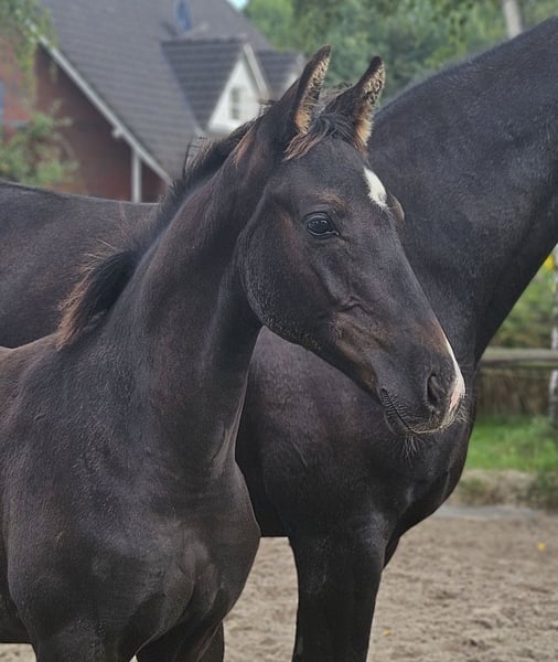 On behalf of the breeder: A stunning, very correct colt by the currently highly successful Bundeschampion finalist St. Emilion OLD. The foal moves with plenty of rhythm and mechanics in the front legs, exhibiting a very good walk and canter. A complete horse with potential for the dressage arena or breeding purposes. The dam is the state-premium mare Romina, who has been successful in young rider competitions up to M-level dressage with the breeder's daughter. She also completed an excellent performance test, earning scores up to 9.0, and is rated with two stars in the Hanoverian dressage breeding program. We are happy to provide further information upon request.