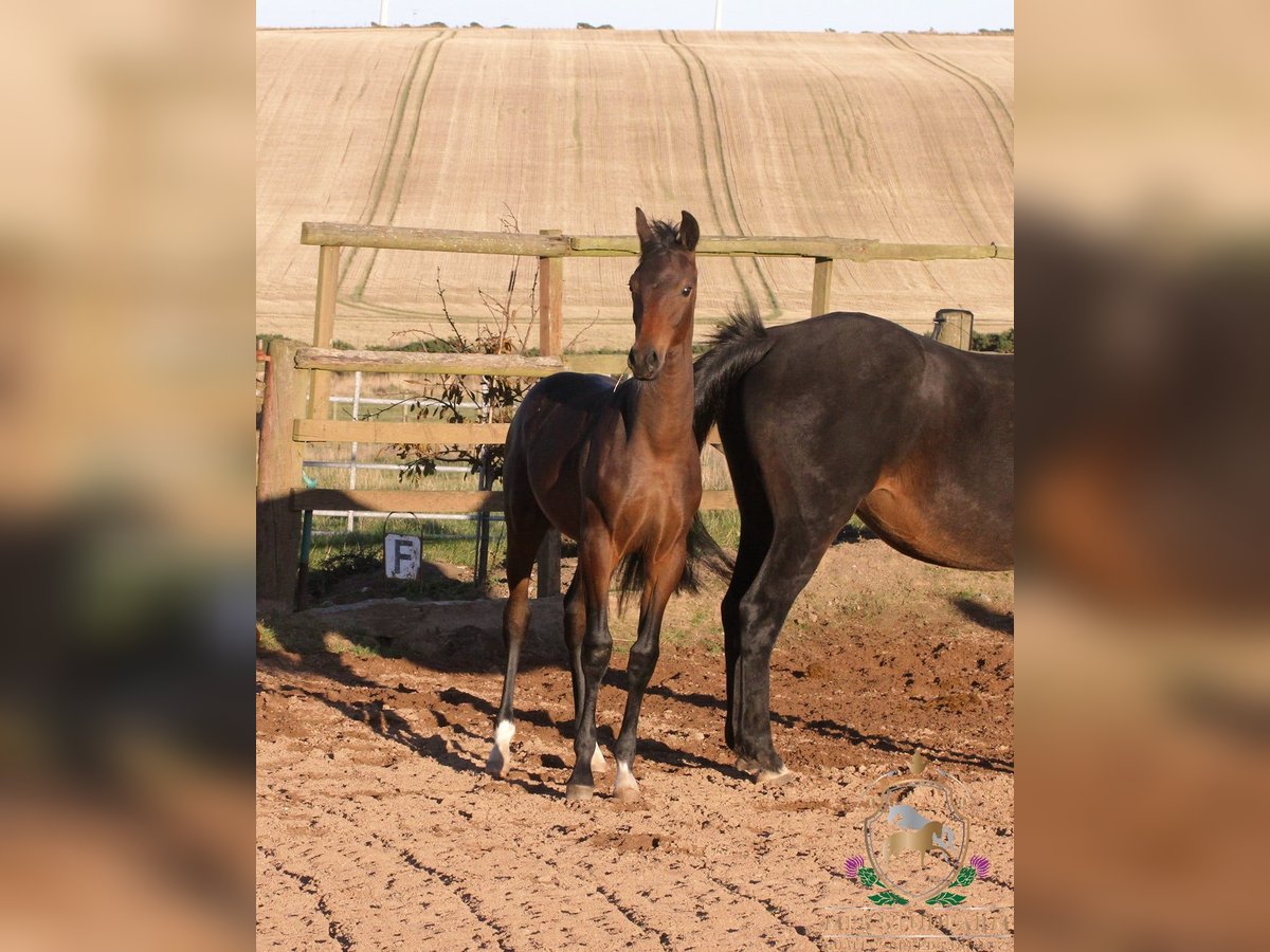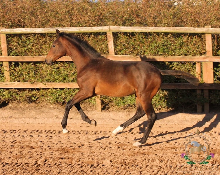 His sire is the Fully Approved Hanoverian stallion, DON AQUI, who was licensed at the Main Hanoverian Stallion Licensing in Verden in October 2000. He passed his 30 day test in Zweibrücken scoring two 9s for his jumping. In 2002 he was very successful in Material/Young Dressage Horse Classes, along with being placed in the Young Showjumping Horse Classes. He then went on to start his eventing career under Jan Büsch by qualifying for the Bundeschampionate in the 5 Year Old Eventing Championship. He qualified for the finals where he was placed 10th!! In the official Hanoverian magazine "DER HANNOVERANER" is stated: "Scene applause und enthusiastic whistling received for Don Aqui v. Don Bosco/Gardeulan (Z.: H. Heineking, Raddestorf) with Jan Büsch in the final. But the judges assessed the round differently. The black proved a consistently good manner and leg technique in front at the jump and showed an energetic canter." DON AQUI has sired numerous sport horses across all three disciplines showing how versatile his stock are and given his limited breedings, also shows what a great disposition he has for producing top quality sport horses. You can find out more here on his own web page- https://www.mfsstudfarm.com/mfs-don-aqui.html Dam of this fabulous colt is the KWPN bred mare WINDEKIND. This exceptional mare has been a proven breeding mare here at the Studfarm for several years. Continually producing Premium and Elite Premium awarded foals by top studbooks of the KWPN and the Oldenburg Verband. She is dam to several competition horses, MFS HUGO BOSS v Belstaff, MFS VOGUE v Valderde, the 1.30m showjumping gelding MFS CASINO ROYAL and MFS NEVERLAND. MFS NEVERLAND was in the top three placed 6 year olds at the British Dressage National Championships in 2024. In 2025 he once again qualified for the Finals of the 7 Year Old Championship, where he was placed 6th overall under his new rider, the Irish Olympic rider, Abi Lyle. The new partnership are now contesting Advanced Medium level dressage. Windekind is by the top sire, SIR SINCLAIR out of a FERRO mare. Sir Sinclair is one of the most prolific sires of FEI dressage horses worldwide. He was ranked the #1 USEF Dressage Sire for six consecutive years, 2015-2020, and has been in the top five ever since. He was awarded the prestigious Keur predicate by the KWPN for his excellence as a sire. He has sired numerous Grand Prix horses, including Dee Clair, Caymus, Cantata, Con Brio SDF, Zuperman, William, Air Marshall, Warina, Westerstorm and Zania. He also has dozens of sons and daughters competing at the FEI level around the world. He is the sire of one Approved stallion and two licensed sons, as well as numerous Sport, Preferent, Elite, Keur and Star offspring. Other impressive titles earned by Sir’s offspring include first place in CDI3* Grand Prix classes, numerous USDF Horse of the Year and USDF All Breeds Horse of the Year Awards at FEI level, GAIG/USDF Regional Championships, KWPN-NA North American Championships, and so much more. This fabulous dark brown colt is very reasonably priced due to the fact we expect him to mature to around 16.1hh. He is so much personality, three correct gaits and with his bloodlines. He will make a fantastic sports horse in the right hands and we know he will excel in any discipline. https://www.mfsstudfarm.com/mfsstudfarmforsale.html