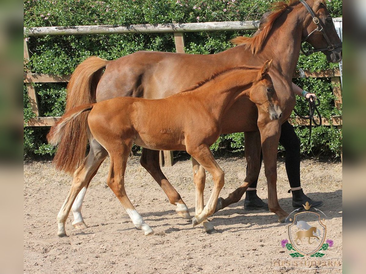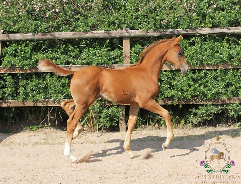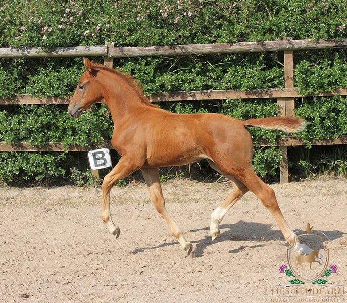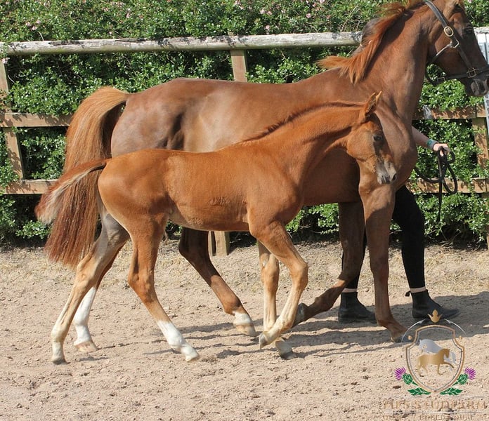 An exceptional colt of outstanding quality, MFS EXPRESSIV is the embodiment of elegance, athleticism, and top-tier dressage potential. With a beautifully refined head, harmonious conformation, and powerful, expressive movement in all three gaits, he is a standout prospect for both sport and breeding. This colt boasts a stellar pedigree: Sire: ESCANENO – A Premium Westphalian stallion, Escaneno impressed at his licensing with a final score of 9.03, including 9.8 for rideability and 9.5 for attitude and willingness to perform. His sire, Escamillo, was Vice World Champion of the six-year-old dressage horses and has produced numerous approved sons. Escaneno’s dam, Vaiana, is part of the celebrated “Reine Freude” family, winners at the Herwart von der Decken show. In 2021, his father Escamillo confirmed all expectations by becoming vice world champion of the six year old dressage horses. He was awarded premium at his licensing in Verden in 2017. This year he provided seven licensed sons. Mother of Escamillo is state premium mare Cassila, daughter of Rohdiamant and out of the famous German dam line of Cinderella of stud Wendeln. Many licensed stallions, state premium mares and successful sports horses stem from this dam line. Among other Cathy OLD, who was German National Champion of four year old mares in 2018. Cassila‘s mother Chantal (by De Niro) is mother of licensed stallions Romanist and Merogonie. Mother father Veneno was qualified to the final of the German National Young Horse Championships in 2015. He is successful with rider Kristy Oatly in competitions up to S*** level. Dam: MFS DE-NIRO’S WIE MUSIK – A homebred mare by the legendary DE NIRO, out of the maternal half-sister to DESPERADOS FRH, the late Olympic stallion. Desperados’ accolades include: Team Gold & Individual Bronze – Rio Olympics European Team Champion – Herning 2013 Team Silver – London Olympics WBFSH World No. 1 Dressage Horse – 2016 She is also maternal full-sister to the 5* International event horse DANITO ridden by Tamie Smith for USA. MFS DE-NIRO'S WIE MUSIK has bred us three foals so far, with her first born in 2023. She comes from an excellent performance dam line. Her siblings MFS DISCOMUSIK (competing up to Elementary level) and MFS FOREVER YOUNG (competing up to Medium level) are both proving themselves in the dressage arena. Grand-sire DE NIRO does not need any introduction. Seen as one of the GREATS of worldwide dressage breeding. klosterhof-medingen.de/en/Stallions/horse/de-niro. The combination of Dancier and Wolkenstein II produced Lordswood Dancing Diamond (by Dancier out of a Wolkenstein II mare) — highly successful in young horse dressage: winner of the 5‑year‑old finals at 2016 Bundeschampionate; then winner of the 6‑year‑old World Young Horse Championships in 2017. MFS EXPRESSIV combines elite genetics with natural talent and charisma. He is a serious contender for the international dressage stage and a compelling stallion prospect for the future. If you're seeking a colt with world-class potential, expressive movement, and impeccable bloodlines, this young star is not to be missed. https://www.mfsstudfarm.com/mfsstudfarmforsale.html