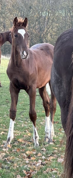 Dieses außergewöhnliche Dunkelfuchs begeistert mit seinem eleganten Auftreten, seiner klaren Typausprägung und seinem harmonischen, modernen Exterieur. Mit vier markanten weißen Fesseln und einer natürlichen Ausstrahlung präsentiert er sich als echter Blickfang – ein Youngster, der jetzt schon beweist, wie viel Qualität in ihm steckt. Erstklassige Abstammung – Leistungsblut pur : Seine Abstammung lässt keine Wünsche offen: Der Vater ist der hochbewährte Floriscount, ein Vererber mit internationaler Anerkennung für Rittigkeit, Mechanik und Sporterfolg. Als Muttervater fungiert der legendäre "Lauries Crusador xx", einer der bedeutendsten Veredler der modernen Warmblutzucht mit enormer Bedeutung für Charakter, Elastizität und sportliche Veranlagung. Die Mutter dieses Hengstfohlens ist Vollschwester zur Stute *"Lola**" die wiederum die Mutter der sportlich hoch erfolgreichen "Florine Old" ist. Diese enge Verwandtschaft zu bewährten Turnierpferden unterstreicht das sportliche Potenzial des Fohlens – bestes Leistungsblut durchgehend abgesichert. Einziges Hengstfohlen des Jahrgangs – eine besondere Chance Da er unser einziges Hengstfohlen in diesem Jahr ist, haben wir beschlossen, ihn in fördernde Hände abzugeben. Sein Talent, seine Qualität und sein Bewegungspotenzial sollen die Chance bekommen, sich unter dem richtigen Reiter oder in professioneller Aufzucht weiterzuentwickeln. Ein Fohlen mit Zukunft für Zucht, Sport und Jungpferdeausbildung Dieses Hengstfohlen vereint alles, was man sich für Dressur und Zucht wünscht: Typ, Charme, eine exzellente Leistungsfamilie und ein Exterieur, das für höchste Ansprüche steht. "Ein Nachwuchsathlet mit Perspektive", der sowohl für den ambitionierten Sport als auch eine spätere Hengstlaufbahn interessant ist. Besichtigung jederzeit möglich Wir verfügen derzeit über keine Videoaufnahmen, aber Interessenten sind herzlich eingeladen, uns auf unserem schönen Hof zu besuchen und sich ein persönliches Bild von diesem besonderen Fohlen zu machen. Wir sind natürlich Verhandlungsbereit ;-) Bitte Kontakt auf WhatsApp : 0045 42282812