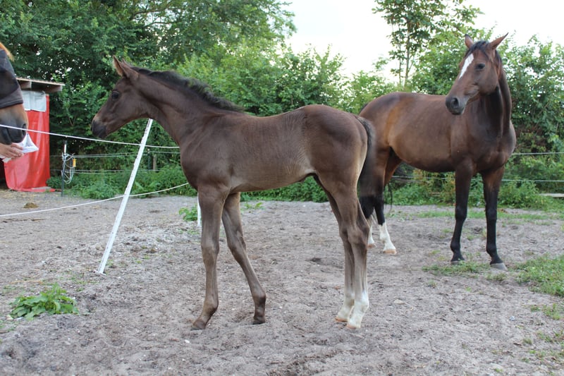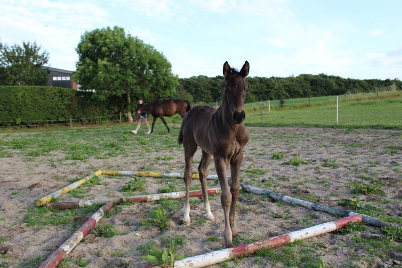 This talented young man impresses with his elegant movements and balanced temperament. He is well-suited for dressage and has the potential to prove himself in higher classes. Beautiful stallion foal by Cadeau Noir from the proven Boney M – Whitestar – Lauries Crusador xx maternal line is for sale. His sire CADEAU NOIR is the reigning U25 European Champion, team European Champion, and double German Champion. This young talent combines the best dressage blood with a flawless character: He is growing up in a herd environment on spacious pastures, is lovingly cared for, well-socialized, and educated according to his age. He is halter-trained, allows himself to be touched anywhere without problems, shows strong nerves, is people-oriented, and very curious – a true charmer with a clear perspective for sport and breeding. If you are interested or have further questions, we look forward to your message. Feel free to visit us to get to know Cosimo in person!