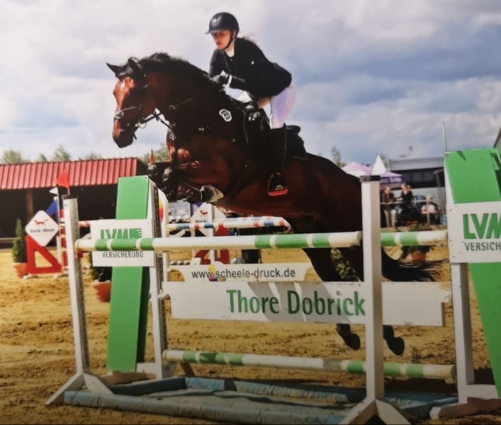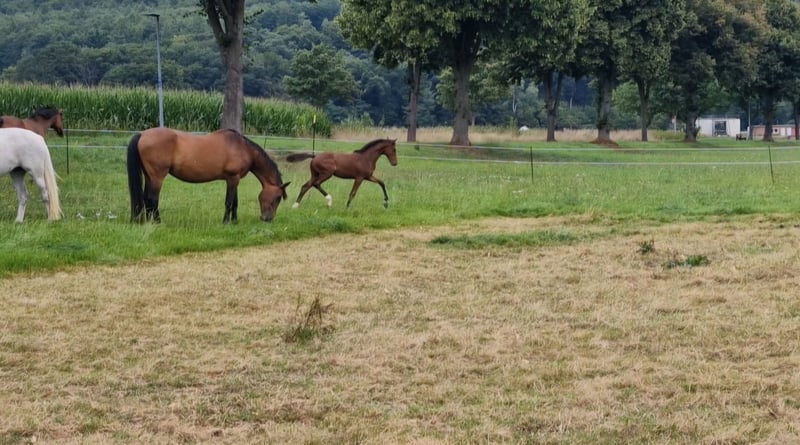 **Folle di stallone Hannoverano, premiato con oro e 6° al Campionato tedesco dei puledri a Lienen!** In vendita c'è un promettente puledro stallone Hannoverano di Esmeraldo x Rebell Junior x Landor S. Eddie the Eagle è nato il 19.05.2025. È un puledro molto tipico e coraggioso. Questo vivace giovane atleta è diventato il vincitore assoluto dei puledri orientati al salto nella mostra dei puledri, ricevendo il premio d'oro. Ha vinto la qualificazione per il Campionato tedesco dei puledri. Così si è qualificato per Lienen. Nella finale a Lienen è arrivato 6°. Punteggi di tipo fino a 9,5! Sua madre è stata anch'essa, nel salto, di successo fino alla classe M. Per ulteriori informazioni o per manifestare interesse, sono a vostra disposizione. Le visite sono possibili su appuntamento. Disponibile in autunno, dopo lo svezzamento!
