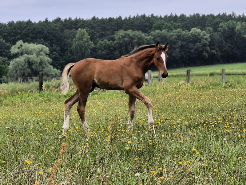 Dieses bildschöne, athletische Hengstfohlen von Esmeraldo beeindruckt durch seinen Ausdruck und Charme – mit vier weißen Socken ein echter Blickfang! Das Fohlen zeigt bereits jetzt viel Bewegungsfreude, einen rhythmischen, leichtfüßigen Galopp und springt mühelos um. Der Hengst besitzt eine erstklassige, springbetonte Abstammung und viel Potenzial als zukünftiges Springpferd. Mit seinem aufgeweckten, selbstbewussten und mutigen Wesen weckt er Vorfreude auf seine weitere Entwicklung! Im Umgang unkompliziert, verschmust und zutraulich. Der junge Hengst ist regelmäßig an der Hand, kennt das Fohlen-ABC und ist in topp Pflegezustand. Regelmäßig beim Schmied, regelmäßig entwurmt, gechippt, kerngesund. Aus liebevoller und fürsorglicher Privatzucht. Sehr gerne zeigen wir Ihnen dieses herrliche Fohlen vor Ort! Eine Besichtigung ermöglichen wir Ihnen umgehend. Kontaktieren Sie uns gerne auch per WhatsApp: +49 176 55323449. Sein Vater ist der überragende Holsteiner Siegerhengst Esmeraldo (Hengststation Völz). Esmeraldo erhielt herausragende Benotungen für seine Springanlage in allen Teilen seiner Hengstleistungsprüfung, darunter Traumnoten für seine Leistungsbereitschaft (9,3), Rittigkeit (9,2) und Galopp (9,0). Er zählt zu den besten Söhnen des Olympiahengstes Emerald van't Ruytershof und bringt die bedeutenden Gene von Caretino, Lord und Landgraf in die Abstammung ein. Wir sind fest davon überzeugt, dass Esmeraldos überragende Spring- und Reitqualität auf dieses Fohlen übergeht.