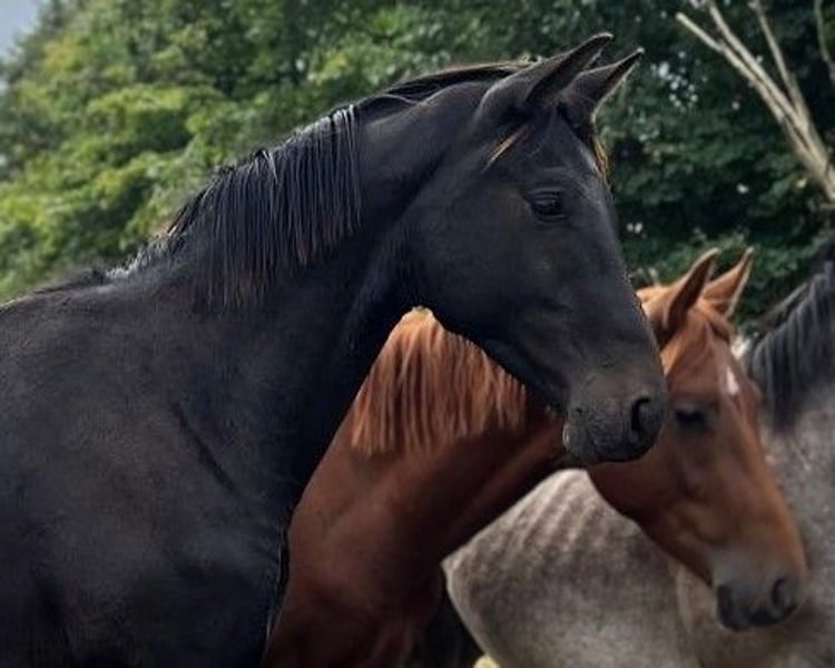 This high-quality stallion has three excellent, elastic, and ground-covering basic gaits. Beautifully built and in noble jet black! He impresses with his outstanding character, is regularly handled, pleasant to deal with, and free from vices. He is optimally developed and will easily grow into his work. Ideal for ambitious amateurs with young horse experience as well as for professionals. Due to his high basic quality and first-class lineage, he is also extremely interesting for the upper levels of dressage sport. In perfect health, from the best breeding, in optimal condition. Vaccinated, dewormed, microchipped, regularly presented to the farrier, and easy to shoe and load. Directly from the breeder. We would be happy to show you this wonderful young horse in person on site! Contact us also via WhatsApp: +49 176 55323449.