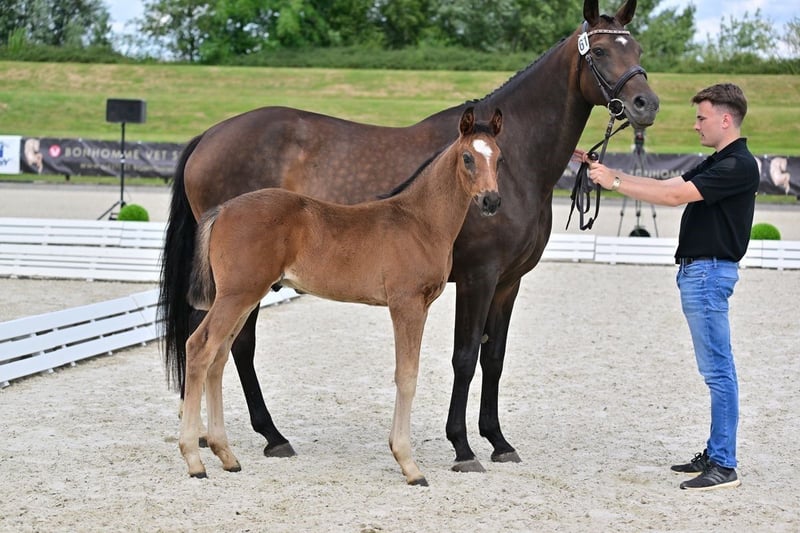 This adorable stallion enchants us with his cool character and his loving, people-oriented nature. He is super uncomplicated to handle and simply always a sweetheart! In addition to his fine character, the young man has three consistently good gaits and correct conformation. This foal is therefore ideal for all riders who want to raise their future competition, leisure or family horse themselves. From robust and sustainable top breeding with plenty of space and lots of pasture, i.e. with the best conditions for a long, healthy resilience. Optimally cared for, supplied with minerals, perfectly healthy, regularly wormed and regularly seen by the farrier. His sire is the still young Secret son Santos (Pape stallion station). He was the best stallion in his 50-day test with a final score of 8.76 and took part in the Bundeschampionat. Santos is strong in character and motivated, he has go and a healthy conformation. What makes him special is his bloodline via Secret and the important stallions Don Schufro and Rohdiamant: they all contribute the all-important rideability and collection ability to his pedigree. The dam Fräulein Smilla is an outstanding, direct daughter of the famous Fürstenball. She passes on a phenomenal willingness to perform and a super interior! Fräulein Smilla is the sister of the impressive Paralympics stallion Don Henrico by Rudolpho Riscalla (Grade IV, Brazil): Silver World Championships in Tryon, Silver Olympics in Tokyo, Bronze World Championships in Herning. Don Henrico was FEI Horse of the Month 08/2022 and was already a premium stallion at the beginning of his career, reserve winner of his licensing and Germany's best stallion of 2007. Fräulein Smilla's extremely successful siblings also include Damien Dark (dressage class S) and Antares Red Star (dressage class M). On the dam's side, this is one of the most valuable Hanoverian mare lines. Hanoverian mare line of Phieke, from which, among others: the licensed stallions Antares Red Star (by Alabaster, M* dressage), Bailando (by Rubin-Royal, dressage Grand Prix, bronze BuCha 4j), Damien Dark (by Dimaggio, S* dressage), Don Henrico (by Don Frederico S** dressage), Donky Kong (by Don Nobless), Florentino (by Don Frederico S** dressage). Don Nobless), Florentinus V (by Florestan I, dressage Grand Prix, Silver BuCha 5yo), For Sure (by Finest, medium (M*) dressage), Rock Springs (by Rock Forever I, LG Celle, advanced (S**) dressage), Zarathustra MT (by Zonik) as well as the successful sport horses Bellevue (by Bordeaux, advanced (S*) level dressage), Bente L by Bonifatius (advanced (S**) level dressage), Casablanca (by Conen, PSG/Inter I), Da Vinci (by Davignon I, advanced (S*) level dressage), Fabulous Treasure (by Fürst Nymphenburg I, LG Celle, LG Celle, LG Celle, LG Celle, LG Celle). Fürst Nymphenburg I, medium (M*) level dressage), Facilone FRH (by Fürstenball, dressage Grand Prix), Fitz Gerald (by Fürstenball, advanced (S**) level dressage), Hann.Pr.A. Four Seasons FRH (by Fürstenball, dressage Grand Prix). Fürstenball, dressage Grand Prix), Frida Gold 6 (by Florestan I, medium (M**) level dressage), Fürst Plus (by Fürst Heinrich, advanced (S**) level dressage), Laurenzo (by Longchamp, advanced (S**) level dressage), Roccolino (by Rocco Granata, advanced (S**) level dressage). Rocco Granata, S* dressage), Royandic (by Royal Blend, M* dressage), Rutherford (by Rocco Granata, S dressage), Stella Sfilata (by Starnberg, S** dressage), Vancouver (by Van Vivaldi 1.00m jumping, PSG/Inter I), Wellaby (by Weltmeyer, medium (M*) level dressage).