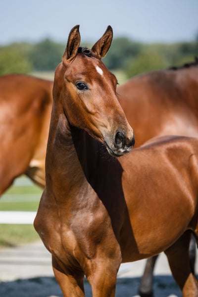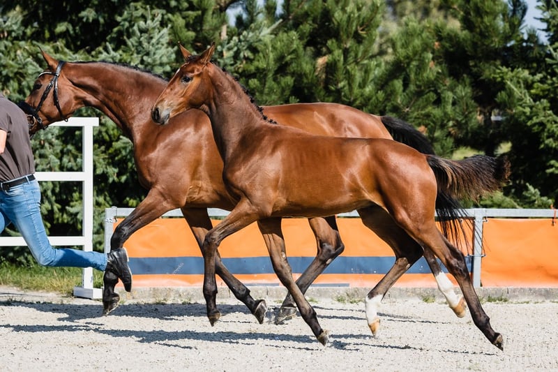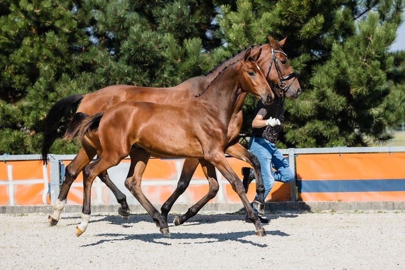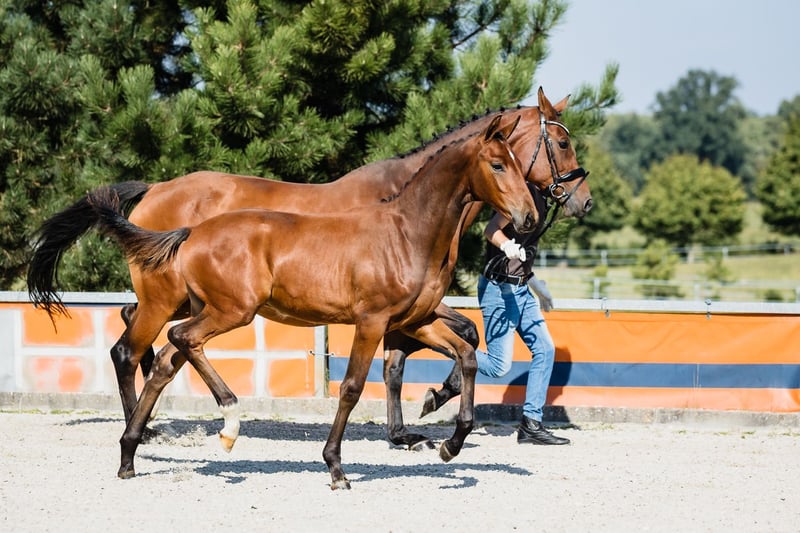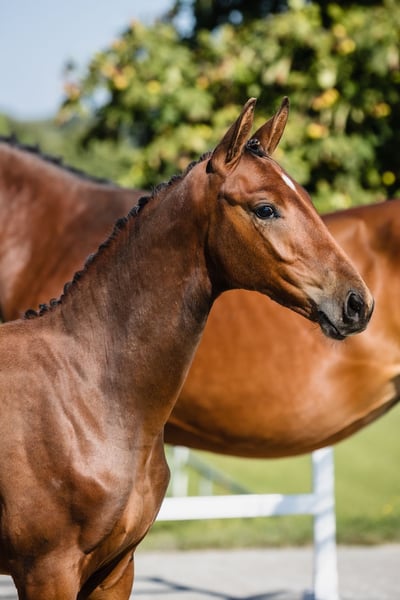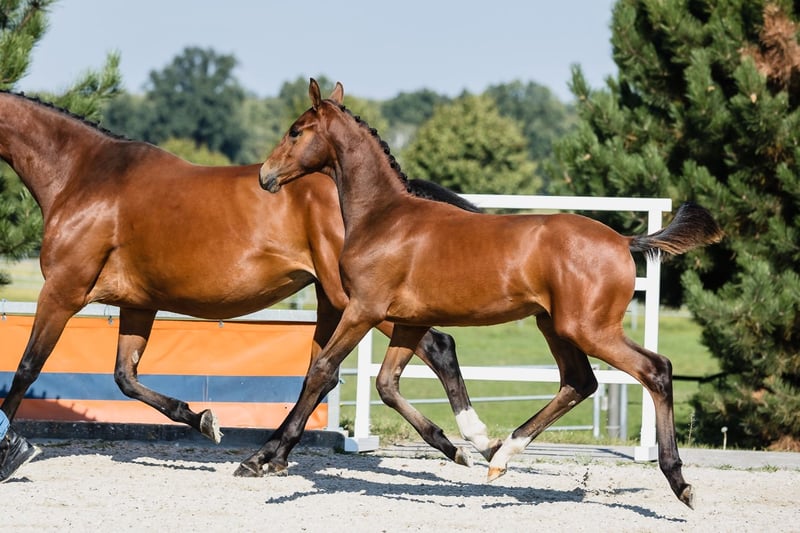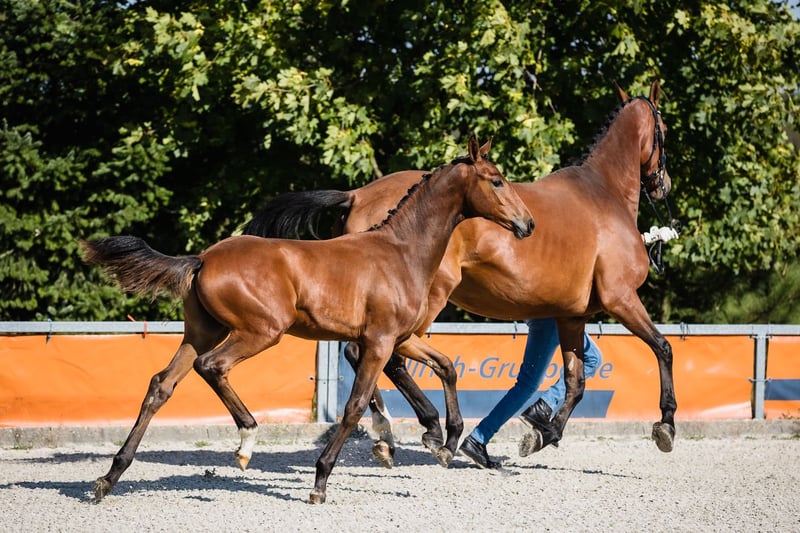 Va Banque is a son of fabulous stallion Va Bene and an amazing black mare Finchen. Va Banque is well build, with a beautiful, noble head and beautiful neck and backline. His leg conformation is also correct. He moves in a light and dynamic way in all three gaits. Va Bene is a very relaxed horse with great mechanics, he has a huge amount of balance in all three basic gaits, which he displays in all performances under saddle. At the end of 2019, he completed a first-class 50-day test with the final score of 8.59 in Schlieckau and is now tested for life. His character showed a great willingness to perform and gave a strong overall impression, he received the grade 9.0. In an impressive year he was ranked second with the rideability 9.25. Va Bene was already victorious in ridden horse tests with top marks (including 9.5 for the canter). In 2021, Va Bene celebrated remarkable sporting successes! He was able to qualify for the 2nd World Championships in Warendorf and immediately for the Bundeschampionat. His nature is so ingenious, he is incredibly trusting and people-oriented. He wants to work with people and you can see he enjoys it.