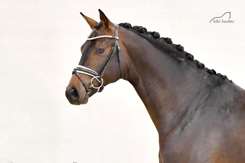 Endorphin was born in Hemmoor and descends from Escolar-Don Nobless-Münchhausen-Werther. In terms of charm, type brilliance and modernity, Endorphin clearly stands out from many representatives of his currently so successful paternal dynasty. His hard-working and extremely agile forehand and hindquarters technique in trot and canter as well as his walk, which is considered to be particularly good, attracted a lot of attention during his performances at the licensing in Verden. His alert nature, which is characterized by a great overview, as well as his positive sensitivity and willingness to work also form the foundation of a future top horse as far as his interior is concerned. His sire Escolar is in the German A squad under his rider Hubertus Schmidt. As a sire, he produced two medal winners at the 2021 World Championships for Young Dressage Horses in Verden. As far as the 2021 licensing season is concerned, he was able to leave his mark on it with his sons and grandsons. The dam's sire Don Nobless is the next Nations Cup stallion in the pedigree, who is also described in more detail on these pages and will certainly be familiar to our breeders. The following stallion, Rousseau, was also stationed with us in Hemmoor. In Dutch horse breeding, he bears the title "Preferent", which is only awarded very rarely and testifies to the very highest quality of inheritance. Through his sons and grandsons, he has a worldwide influence in dressage horse breeding and is probably the most influential son of his great sire, the Olympic stallion Ferro. Endorphin's family also stands for outstanding quality on the all-important mare side. There are four stallion dams in direct generational succession. Like her half-sister Que Belle, his beautiful dam Donna Musica was show winner at the Dobrock. Both mares were awarded 8.5 tests and represented the colors of our stable at the von der Decken show. Granddam Feine Melodie and great-granddam Melodie brought us several internationally successful Grand Prix horses in addition to licensed stallions. The subsequent Werther mare Wakonda is one of the foundation mares of our farm. With the licensed Regazzoni and Donnerwerther, she produced a German Vice Bundeschampion and an English Bundeschampion. We firmly believe that it is such thoroughbred mare lines that form the basis for a stallion's good heredity. Breeding means thinking in generations. Endorphin has been given all the tools by his family to make a career in sport and breeding.