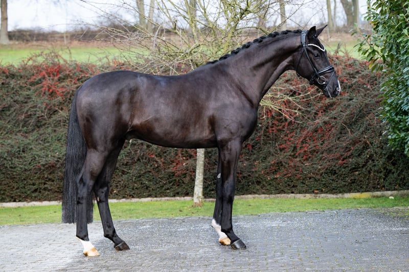von Vivaldi – Desperados gekört für Hannover und Oldenburg, weitere auf Anfrage WFFS frei Röntgenprotokoll unter www.hof-thelker.de Züchter: Christian Thelker Decktaxe Frischsamen: 300 € bei Besamung + 500 € bei Trächtigkeit (zzgl. USt.) Jungzüchterrabatt! Züchtern bis 30 Jahre gewähren wir 30% Rabatt! Weitere Informationen bei Christian Thelker +49 175-854 3529 oder Karl-Heinz Hooghoff +49 170 4450576 Veltins hat das Besondere. Nicht nur genetisch bringt er alles mit, was wir uns wünschen, auch unter dem Sattel begeistert er mit seiner Mechanik und den hervorragenden Reiteigenschaften. Vivaldi – der Vater Vivaldi war in den Niederlanden HLP-Reservesieger und gewann 2007 den Pavo Cup der Fünfjährigen (vergleichbar mit dem Bundeschampionat). Von Hans Peter Minderhoud/NED wurde er 2008 und 2009 zum Sieg in der KNHS/KWPN Hengst-Serie geritten, wobei er für seinen Trab die 10 erhielt. Anschließend platzierte er sich international erfolgreich bis St. Georges. 2013 gewann er bei der KWPN-Körung die VHO-Trophy. Er gehört seit Jahren zu den Top Dressurpferdevererbern der Welt und ist nicht nur durch den Louisdor Preis Sieger Viva Gold auch in diesem Jahr wieder aktueller denn je! Déjà vu – die Mutter Die Zuchtleistung seiner Mutter „Déjà vu“ ist ebenfalls beachtlich, ihr erstes Fohlen Estero von Escolar nahm dreimal am Bundeschampionat teil und konnte sich 2019 an 4. Stelle im Finale der fünfjährigen Dressurpferde platzieren und ist inzwischen unter Shelly Francis Grand-Prix siegreich. Seine ein Jahr jüngere Vollschwester Et voila platzierte sich 2018 beim Bundeschampionat der dreijährigen Stuten und Wallache an 7. Stelle und ist mittlerweile in der schweren Klasse erfolgreich. Déjà vus drittes Fohlen Ballance von Ballantines Finest qualifizierte sich für das deutsche Fohlenchampionat in Lienen. Dreijährig legte sie eine hervorragende SLP ab (Fremdreiter 10,0) und wurde mit der Hannoveraner Prämie ausgezeichnet. Déjà vus viertes Fohlen ist unser Stationsbegründer Beck´s FRH! 2025 wurde Déjà vu mit ihre Tochter Ballance und ihrer Enkeltochter als Elite-Familie ausgezeichnet und konnte auf der Herwart-von-der-Decken Schau in Verden das internationale Fachpublikum mit ihrer Bewegungsmechanik begeistern! Mit Veltins schickt sie einen weiteren vielversprechenden Nachwuchsvererber ins Rennen. 2 gekörte Hengste, 1 Hannoveraner Prämienstute, insgesamt 5 Teilnahmen am Bundeschampionat, 3 S-erfolgreiche Dressurpferde, 1 Grand-Prix Pferd, 1 Bronzemedaille bei der WM.