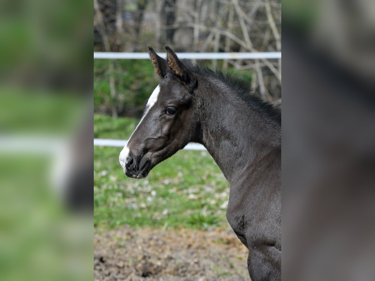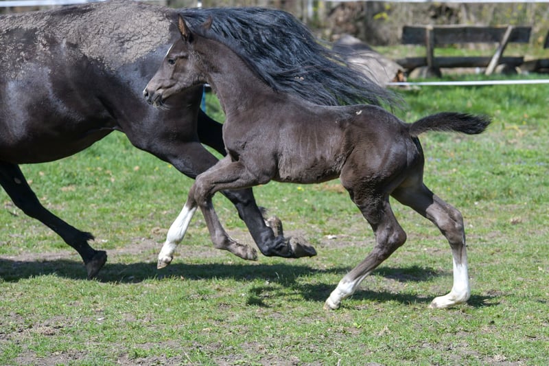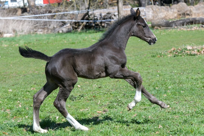 Zum Verkauf steht ein wundervoll gezeichnetes Hengstfohlen vom Starvererber „Secret“ Geboren am 10.03.2026 Der kleine Mann ist korrekt gebaut und macht seinem Papa alle Ehre : Er besitzt einen großen, raumgreifenden Galopp, einen locker durch den Körper schwingenden Trab und einen großen taktreinen Schritt. Wer auf der Suche nach einem Nachwuchspferd für das große Viereck ist, ist hier genau richtig.