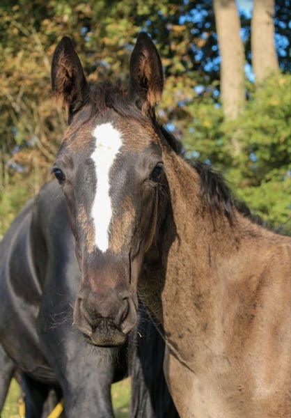 Te koop is de uitzonderlijk typvolle Hannoveraanse hengst Juvinius vom Leisch, geboren op 15-06-2025. Deze jonge charmeur overtuigt nu al met zijn moderne uitstraling, krachtige bewegingspatroon en zijn opvallend vriendelijke aard. Zijn vader Jameson RS2 (Blue Hors Zack x Negro) wordt beschouwd als een van de meest opvallende dressuurverervers van Europa. Uitstekende rijdbaarheid, maximale bewegingskwaliteit en een voorbeeldige carrière kenmerken hem. De moeder Rocella (Rotspon x Salvano) heeft een elite-afstamming die zich al vaak in de sport heeft bewezen. Meerdere van haar nakomelingen zijn succesvol tot Inter I en Grand Prix, een zus loopt momenteel bij Hof Kasselmann. Rocella's nakomelingen zijn bijzonder veelzijdig – in de dressuurring, in het parcours en zelfs in de mensport. Ze staat bovendien bekend om haar bovengemiddelde gezondheid: meerdere nakomelingen zijn met een 1e TÜV röntgenfoto gekeurd. Dit veulen belooft niet alleen sportieve perspectieven, maar ook foktechnische relevantie – een echte kandidaat voor ambitieuze dressuurrijders of hengstfokkers die inzetten op kwaliteit en prestaties. Juvinius groeit op in een diervriendelijke kudde met andere veulens, is uitstekend gesocialiseerd, mensgericht en wordt liefdevol verzorgd. Hij is gechipt, ontwormd en wordt geregistreerd bij het Hannoveraanse Verband. Actuele video's zijn beschikbaar en kunnen bij serieuze interesse graag worden verstrekt. Neem gerust contact met ons op voor meer informatie of een bezichtigingsafspraak.