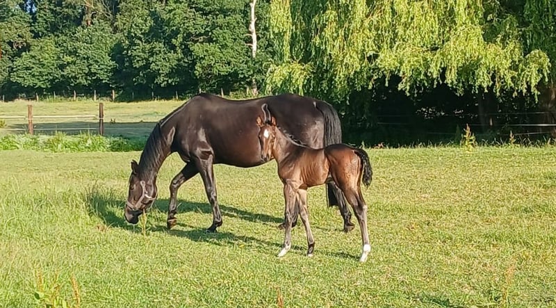 Eine Offerte in die Zukunft Unser Hengstfohlen von Khedira aus unserer St.Pr.St von Avagon vereint das Beste seiner Eltern. So zeigt er sich hoch elastisch , dynamisch und sehr korrekt. Dazu vereint er ein tolles Interieur mit einem korrekten Extereur. Seine Mutter erfolgreich in der Vielseitigkeit, bis zu ihren Unfall , auch von Jugendlichen vorgestellt . Sie hat eine deutliche Doppelveranlagung und eine Prüfung absolviert , die keine Wünsche offen lässt. Selbst bei uns geboren, kann weitere Nachzucht bei uns zu besichtigen werden. International erfolgreicher Stamm. Ihre Nachzicht bisher in familiären Umfeld verkauft, daher ehr ländlichen unterwegs Aus dem Stamm zur Zeit aktuell Cera Blue B beim Bundeschampionat erfolgreich , ebenso stammt z.b Grey Top aus dem Stamm u.v.a. mehr Das Landgestüt Celle schreibt über Khedira Kannan – Caretano Z – Darco – Dieses Pedigree liest sich wahrlich wie eine Platzierungsliste eines Großen Preises. Vater Kannan rangiert aktuell unter den Top-Ten der WBFSH-Liste und war selbst international hocherfolgreich unter seinem französischem Reiter Michel Hécart. Auf dem internationalen Parkett zuhause war auch Großvater Caretano Z mit seinem Reiter Jos Lansink. Und in den Top-Ten der Olympischen Spiele von Barcelona 1992 ist kein geringerer zu finden, als Urgroßvater Darco mit Ludo Philippaerts. Doch nicht nur die Väter überzeugen in dem Pedigree von Khedira: Großmutter Dolce Vita St. Ghyvan Z brachte, mit Quidam de Revel, den unter Miguel Viana in S*** erfolgreichen Quidarco und Urgroßmutter Narouscha M (v. Cantus) mit Cheers Cassini den in S-Springen erfolgreichen Three Cheers. Abgerundet wird dieses Pedigree durch den Stutenstamm der Wilma und unter anderem durch Urano v. Elmshorn, der mit John Paul Sheffield Erfolge in CIC***-Prüfungen feierte. Gleich bei seinem ersten Turnierstart konnte Khedira unter Sven Rudolph mit einem Doppelsieg glänzen! Die erste Springpferde A* gewann das Paar mit einer 8,7 und die Springpferde A** mit einer 8,4. Im Laufe der Zeit kamen zahlreiche Siege und Platzierungen bis zur Springpferdeprüfung der Klasse M hinzu. In der Saison 2021 konnte Khedira mit Platzierungen in M** glänzen. 2022 konnte Khedira zahlreiche Siege und Platzierungen in der Klasse S erringen und krönte die erfolgreiche Saison durch eine Platzierung im Finale des Bundeschampionats der 7-jährigen Springpferde. Darüber hinaus konnte er sich im internationalen Youngsterfinale in Opglabbeek (BEL) an 3. Stelle platzieren. An diese großartige Saison konnte Khedira 2023 anknüpfen. Unter Sven Rudolph konnte der Hengst mit einer beachtlichen Anzahl von Platzierungen in der schweren Klasse mehrfach zeigen was in ihm steckt und was für die Zukunft zu erwarten ist. Hier reift ein moderner Sportler heran, der an Vermögen kaum zu überbieten ist.