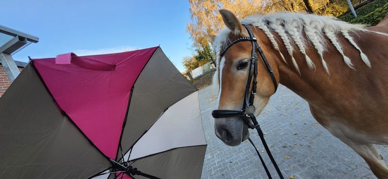 Feder is een zeer typvolle jonge Haflinger merrie met uitstekende rij-eigenschappen. Ze komt uit een kleine fokkerij in Zuid-Tirol, waar al decennia lang zeer succesvol wordt gefokt met slechts twee merries. De fokstammen die daar worden onderhouden, hebben al talloze hooggekwalificeerde merries voortgebracht, en Feder was zelf gekwalificeerd voor het veulenkampioenschap en daar hoog geprezen. In Duitsland is ze nog niet gepresenteerd of geregistreerd als fokmerrie, maar ze is een kandidaat voor premie en daarom ook zeer interessant voor de fokkerij. In Zuid-Tirol (regio Bozen) heeft ze de zomers vrij in de kudde op de alpenweiden doorgebracht, voordat wij haar naar Duitsland hebben gehaald. Ze is inmiddels aangezad en toont zich zeer leergierig en enthousiast; ze is beleerd, rustig en sterk nerveus, maar heeft voldoende bewegingsvrijheid om ook sportief te worden ingezet. Naast haar mooie exterieur beschikt ze over drie goede basisgangen, waardoor verdere opleiding als dressuurpony zeker de moeite waard is. Momenteel wordt ze in alle drie de basisgangen gereden, waardoor verdere training in alle disciplines nodig is, maar we genieten nu al elke dag van het werken met haar. Ze is altijd gemotiveerd om alle taken goed uit te voeren en doet altijd goed mee. Vanwege haar opleidingsniveau is ze op dit moment niet geschikt voor kinderen of beginners en heeft ze verdere professionele training nodig. Naast dressuurmatige training in de hal en op het piaf heeft ze al een goede algemene ontwikkeling doorgemaakt. Ze laat zich zeer goed laden, blijft braaf staan bij de hoefsmid, kent honden, tractoren, spuiten, cavaletti en stangenwerk, en heeft deelgenomen aan een Horseagility-cursus, waar ze alle opdrachten vol vertrouwen en met succes heeft uitgevoerd. Ze is reeds röntgenologisch uitstekend gekeurd (mei 2024) en toont zich hier net zo robuust als tijdens haar opfok. Ze is tot nu toe nooit ziek geweest en wij hebben geen afwijkingen kunnen constateren. Ze is momenteel officieel gemeten op 1,48 m met schoenen, maar door haar stevige fundamenten kan ze ook grotere ruiters uitstekend dragen.
