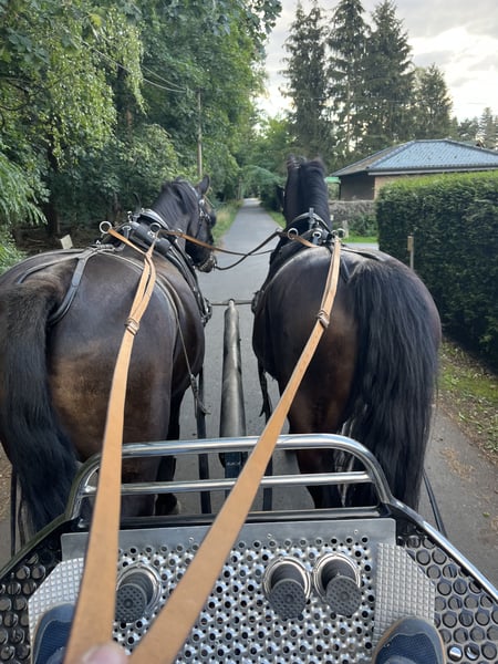 Einspännig und Zweispännig zu Fahren und Freizeitmäßigzu Reiten. Beide 14 Jahre alt. Hochzeitsfahrten sowie Festumzüge und Turnier bis A gefahren. Nur zusammen zu verkaufen. 01713156901