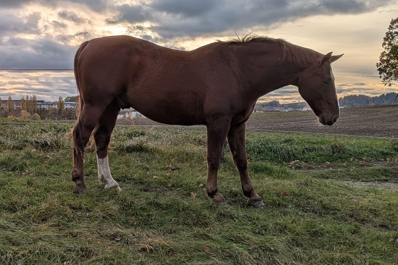 Schweren Herzens suche ich aus persönlichen Gründen ein neues, fürsorgliches Zuhause für meinen SW-Wallach El Castello. Ein guter Platz steht für mich klar im Vordergrund. Er ist 19 Jahre alt, ca. 165 cm groß, von der Rasse Sächs.-Thür. Schweres Warmblut und stammt ab von Elbkapitän x Cartoon. Vom Charakter her ist er ein absoluter Schatz: gutmütig, umgänglich, unkompliziert und sehr verträglich. Er steht aktuell problemlos in einer gemischten Stuten-/Wallachherde. Er ist schmiede- und verladefromm und im täglichen Umgang brav und zuverlässig. Gesundheitlicher Hinweis: Aufgrund von Arthrose im rechten Vorderbein ist er nicht mehr voll belastbar. Er eignet sich für ruhige Ausritte im Gelände sowie für Spaziergänge. Asphaltierte Wege sollten möglichst vermieden bzw. nur eingeschränkt genutzt werden. Haltungswunsch: Derzeit ist er in einer Außenbox mit Paddock untergebracht und hat täglichen Koppelgang. Im Sommer steht er gemeinsam mit der Herde 24/7 auf der Weide. Für seine Zukunft wünsche ich mir eine ähnliche, pferdegerechte Haltung mit ausreichend Bewegung, Sozialkontakt und Ruhe. Ich wünsche mir für ihn Menschen mit Herz, die ihm einen liebevollen Lebensabend ermöglichen. Bei ernsthaftem Interesse und einem passenden Zuhause freue ich mich über eine Nachricht.