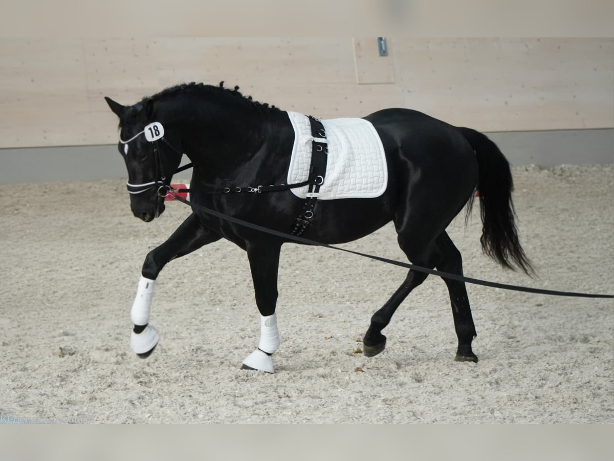 Im Auftrag wird ein im sportlichen Typ stehender Schwerer Warmblutwallach vermittelt – ideal für den gehobenen Freizeitreiter oder Fahrer! Dieser beeindruckende Rappe wurde im Jahr 2023 geboren. Seine Mutter ist die Staatsprämienstute Zaira angepaart zur Veredlung an den Vollblüter Rock of Romance xx. Romeo hat einem Stockmaß von 166 cm bietet er die perfekte Größe für vielfältige Freizeitaktivitäten. Er wurde zur Schweren Warmblutkörung im November vorgestellt. Er ist intelligent, leistungsbereit und möchte immer alles richtig machen, dadurch braucht er einen erfahrenen Pferdemenschen, der ihm auch im Umgang Sicherheit gibt. Er wurde im Rahmen der Körung longiert und ist dadurch mit guter Bemuskelung ausgestattet. Er verhielt sich danach auch mit Sattel brav, sodass er mit Reitergewicht angetestet wurde. Bei Interesse oder weiteren Fragen stehe ich gerne zur Verfügung. Vereinbaren Sie gerne einen Termin zur Besichtigung und zum Kennenlernen!